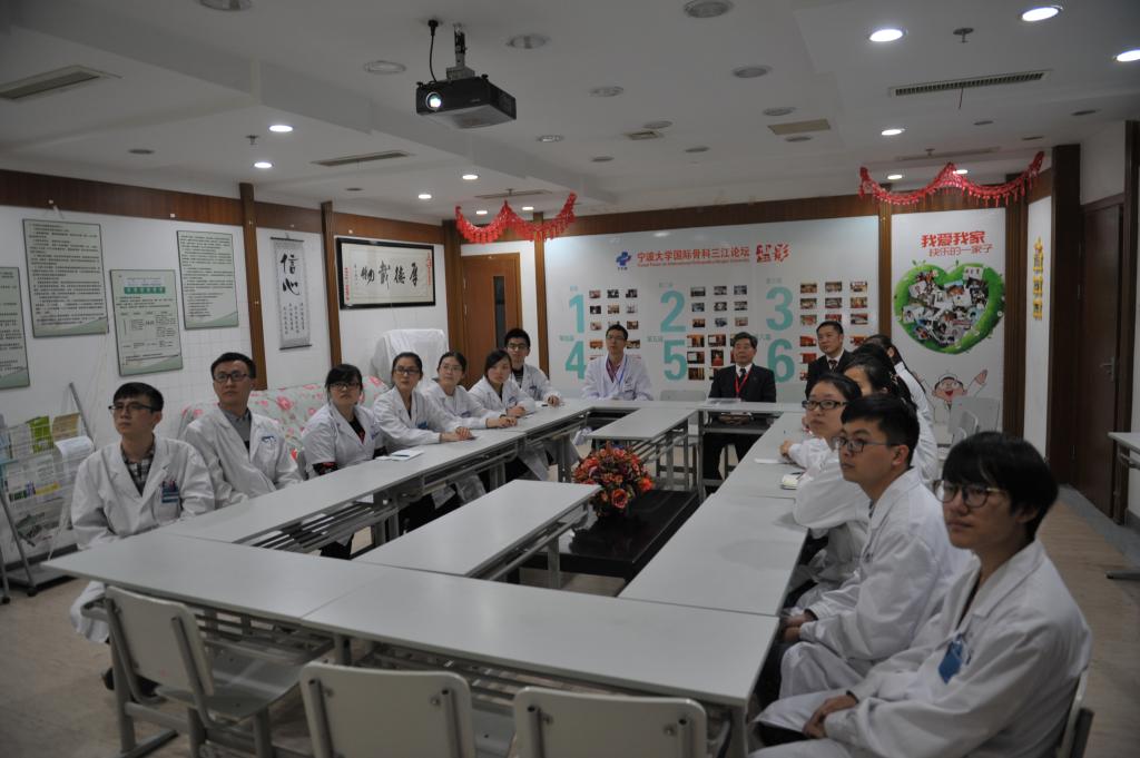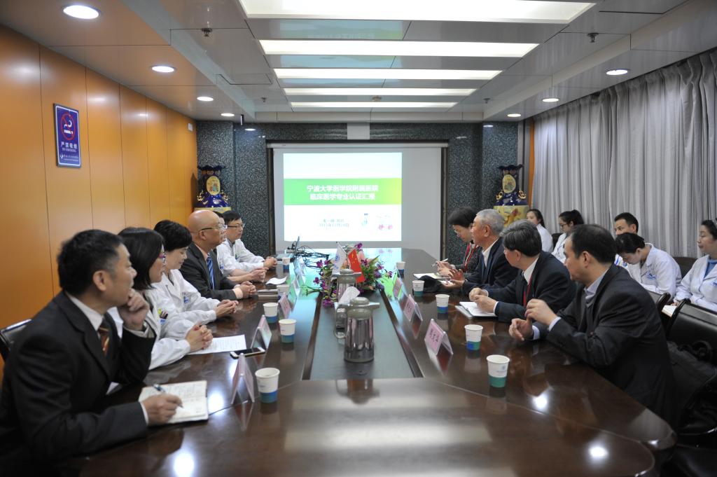 医学院附属医院、附属宁波市第二医院,参观了院史馆,听取了各院院长专题汇报,走访了管理部门和各教研室,抽查了大量的原始教学资料;随即主持召开了临床带教医生和教学管理人员座谈会,高年级学生座谈会,详细询问了医院临床教学情况。下午,专家组观摩了4年级小班临床见习和5年级实习生内、外科教学查房等,对各医院的临床教学质量做了全面细致的了解。专家组表扬了两家医院的临床教学的组织和教学质量,极大地肯定了医学院推进的小班化教学模式。