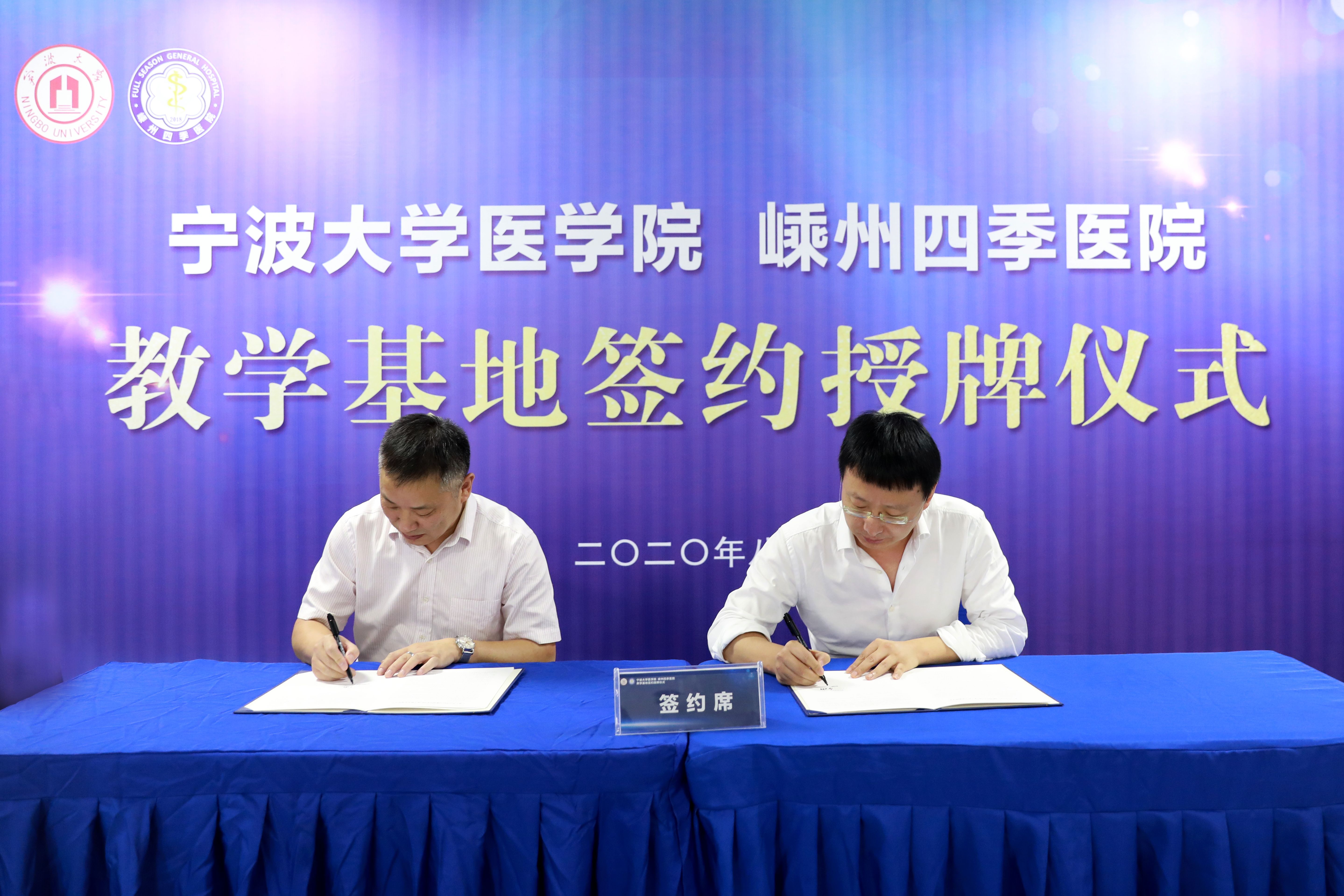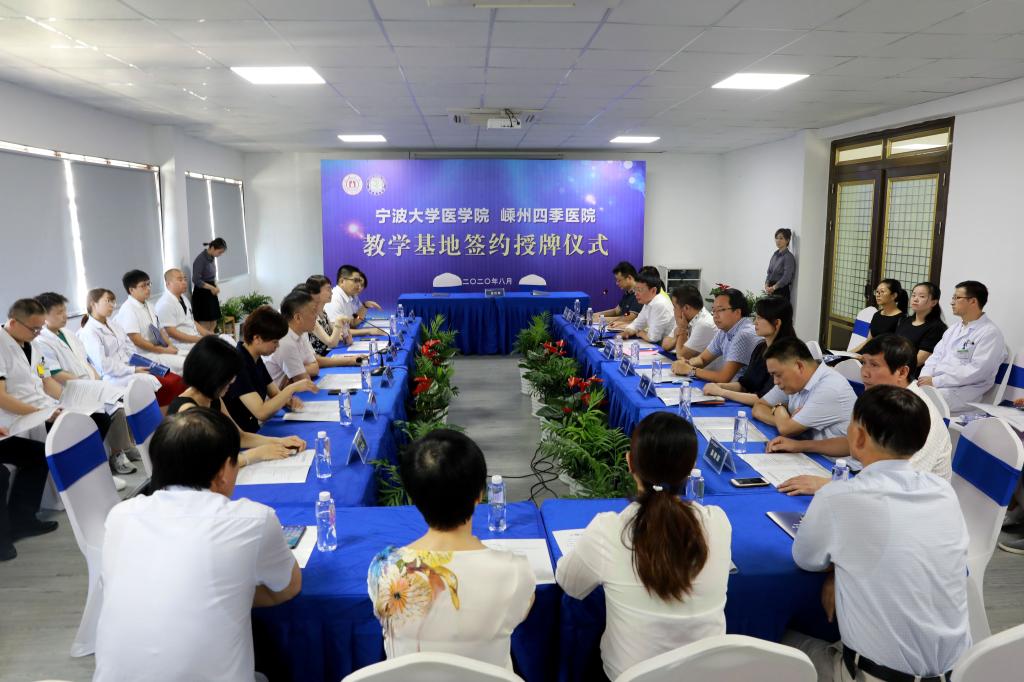 8月14日,副校长乐传永一行赴嵊州四季医院出席医学院教学基地签约授牌仪式。医学院相关负责人与嵊州四季医院负责人签订了协议,乐传永为四季医院授牌。校友办、医管中心、医学院、医学院附属医院相关负责人,嵊州四季医院班子成员及部分医生代表参加了仪式。