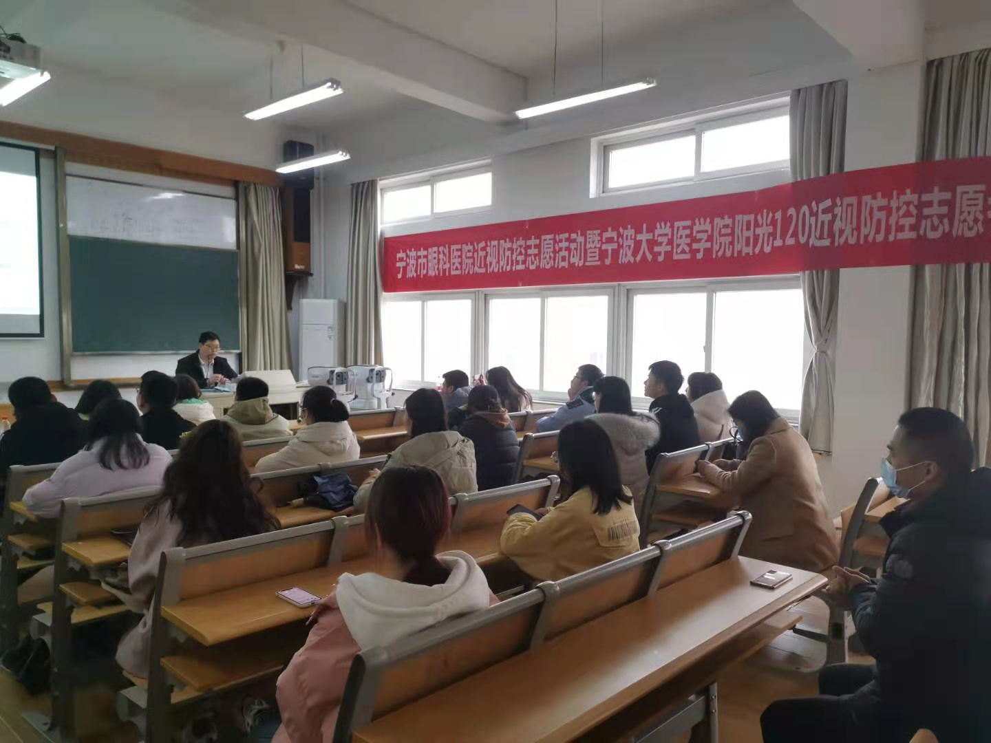 3月7日,宁波市眼科医院近视防控志愿活动暨春满四合院 医学院阳光120近视防控志愿者知识培训在医学院至真楼404教室开展。宁波市眼科医院近视防控主任张来、赵波医生、医学院学工办张敏老师和30余名来自不同专业的志愿者参加了培训。