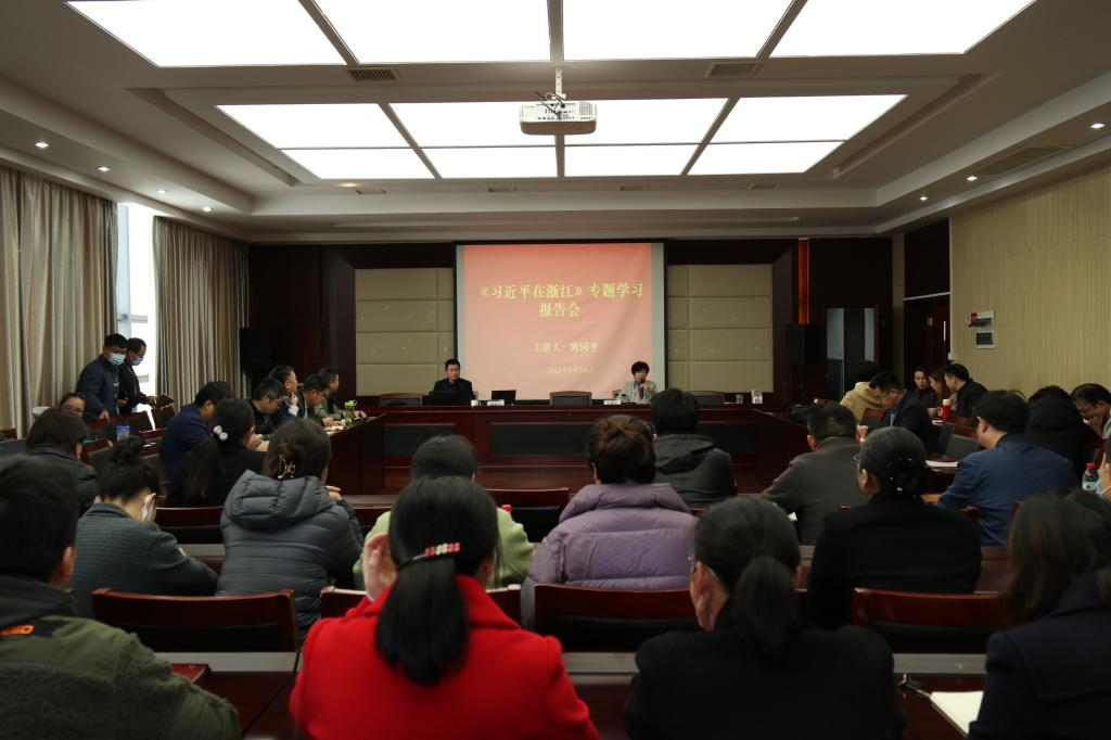 3月24日下午,医学院在王长来楼多功能厅举行《习近平在浙江》专题学习报告会,宁波市“习近平总书记在浙江、宁波考察时的重要讲话精神”专题巡回宣讲团成员陈国平副教授应邀作《春风又绿江南岸——习近平总书记浙江考察调研一周年回顾》专题报告,医学院全体教职工参加了报告会。
