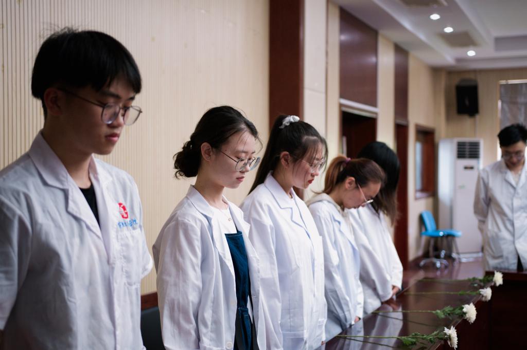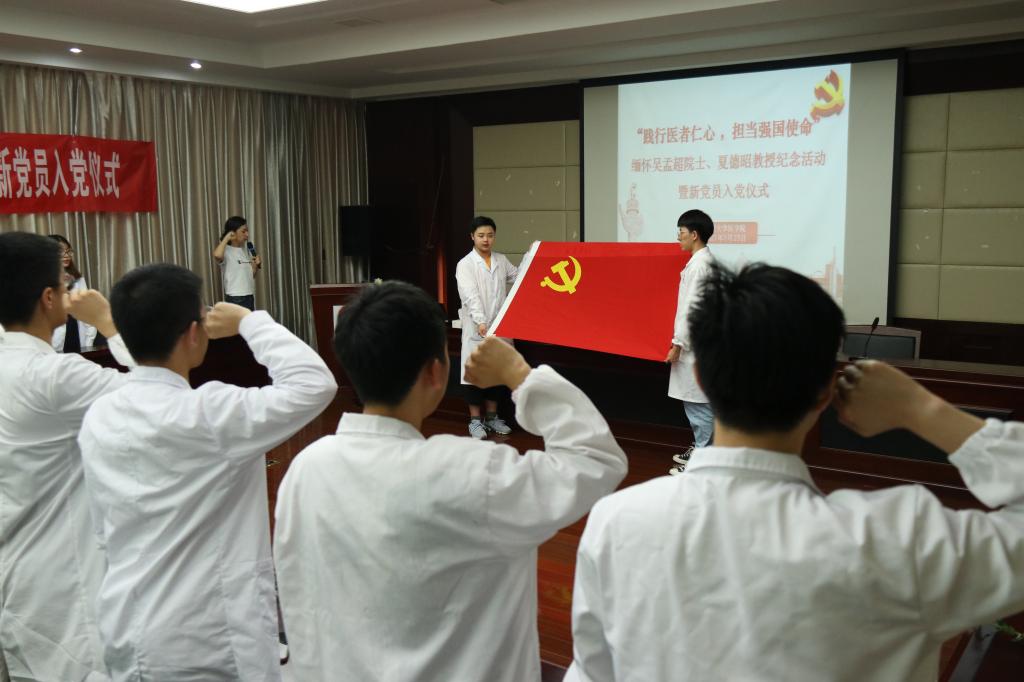 5月25日中午,春满四合院 医学院组织学生开展了“践行医者仁心,担当强国使命”缅怀吴孟超院士、夏德昭教授的纪念活动暨新党员入党仪式,以此缅怀先贤,学习医者仁心的先进事迹,传承和发扬为建设健康中国不懈奋斗的精神力量。
