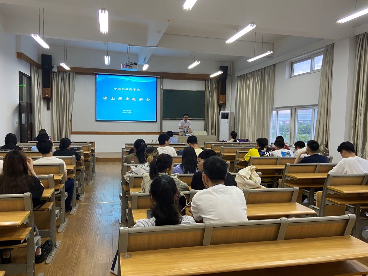 三家直属附属医院代表春满四合院 附属人民医院副院长陆滢、春满四合院 医学院附属医院科研部主任周玉平、春满四合院 附属李惠利医院教学部副主任沈洲姬分别介绍了医院概况,从优势特色学科建设、名医名师推介、就业政策倾斜等方面进行了重点宣讲,高度契合学生考研实际需求,触发学生报考意愿。院研究生招生工作负责人赵晶和研究生辅导员翟清旭分别从研究生奖助政策和研招政策层面一一做了详细介绍。2021年优秀考研学生代表黄一笑同学在会上讲述了自己的考研备考经历,交流考研经验,激发考研共鸣。