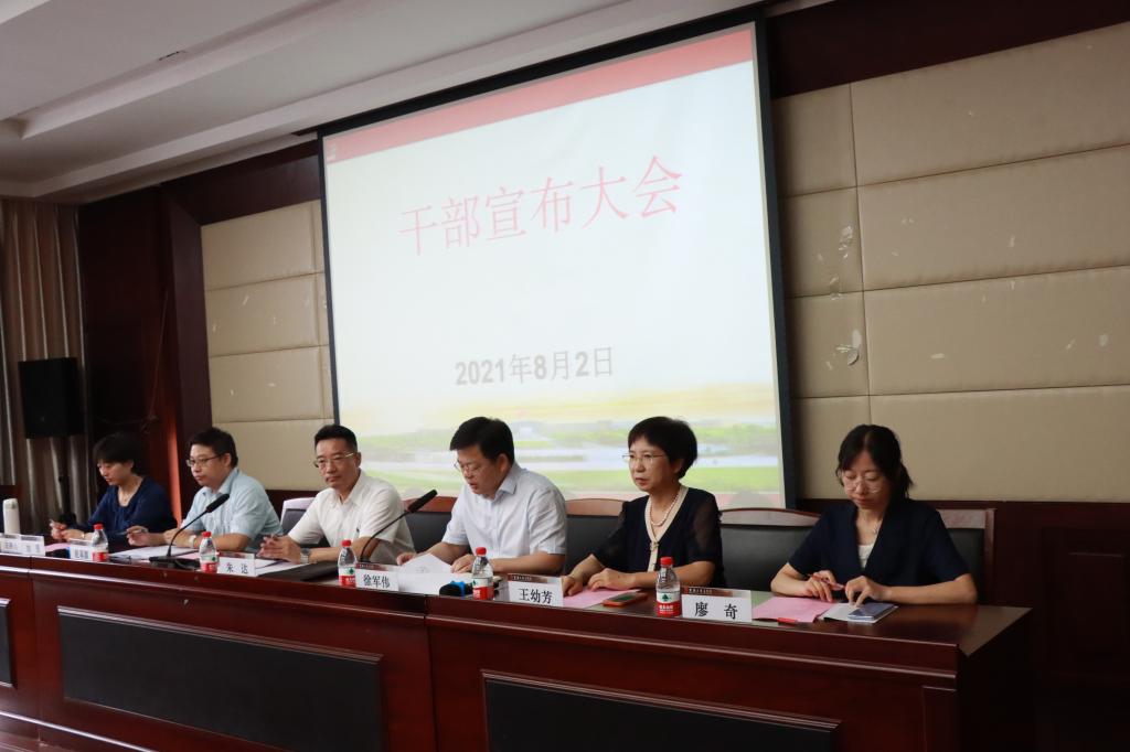 会上,徐军伟部长宣读了干部任免文件,任命赵基源同志为医学院党委常务副书记兼副院长,廖奇同志为医学院副院长,并对干部情况作了简要介绍。王幼芳同志、赵基源同志、廖奇同志、刘昱院长分别作了表态发言。
