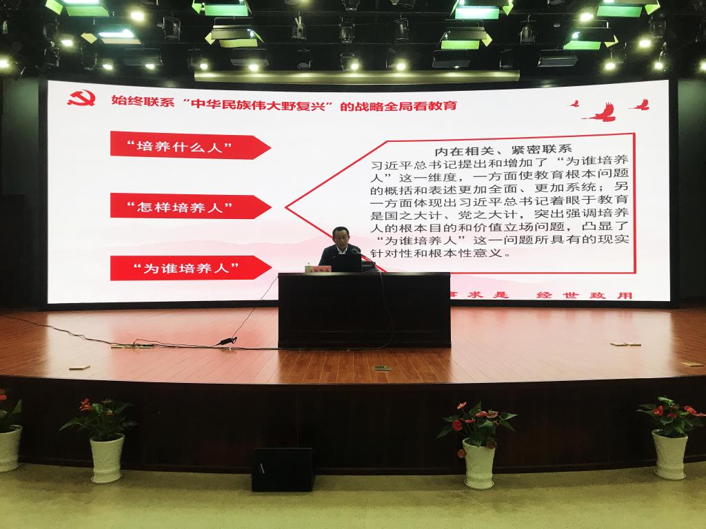 乐传永首先从习近平总书记教育重要论述的战略视野出发,指出世界百年未有之大变局和中华民族伟大复兴的战略全局,构成了习近平总书记审视和思考中国教育问题的战略视野。随后他深入分析了习近平总书记在全国教育大会上提出的“九个坚持”,引导同学们深入思考中国教育“培养什么人,怎样培养人,为谁培养人”,明确教育是国之大计、党之大计,为党育人,为国育才,培养德智体美劳全面发展的社会主义接班人。他还从时代、理论、实践、世界四个维度阐述了习近平总书记教育重要论述的重要意义,并希望同学们努力学习,不懈奋斗,以更加坚定的理想信念和历史担当,承担起强国一代的使命,为实现“两个一百年”奋斗目标和中华民族伟大复兴的中国梦贡献力量!