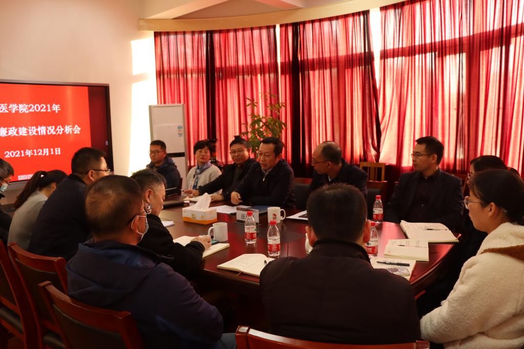 12月1日下午,医学院党委召开2021年度党风廉政建设情况分析会。副校长乐传永、校纪委委员汪盛科,医学院全体领导班子成员、党委委员、纪委委员、下设学院负责人、重点部门负责人、重点项目负责人、重点风险岗人员参加了会议。