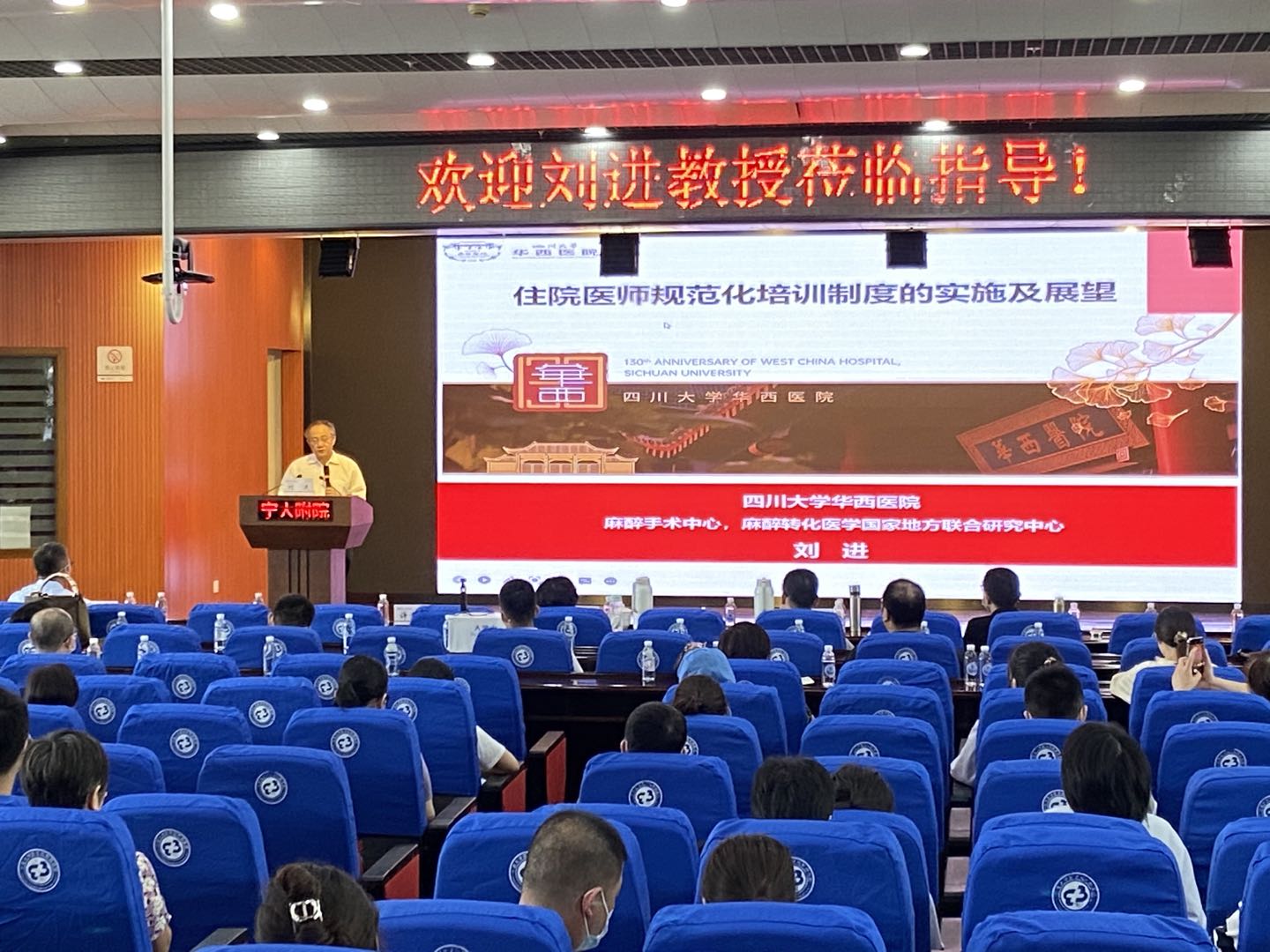 为提高医学院专硕研究生住院医师规范化培训质量,进一步探索专硕生人才培养路径,8月19日上午,医学院邀请四川大学华西医院刘进教授在春满四合院 医学院附属医院学术报告厅为学院师生作题为《住院医师规范化培训制度的实施及展望》的讲座,讲座由医学院执行院长刘昱主持,来自各家住培基地的教学、管理人员,研究生导师及专硕研究生近百人参加了本次讲座。