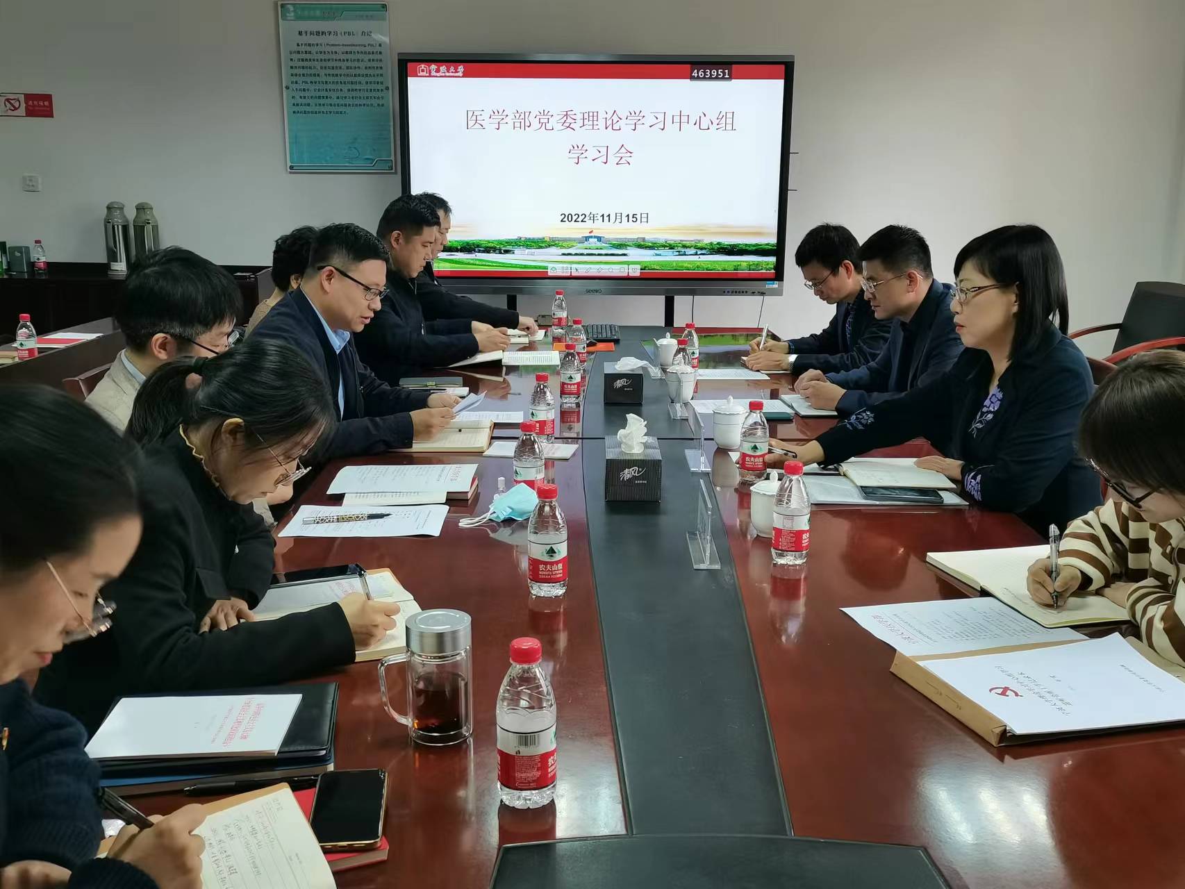 11月15日下午,春满四合院 党委理论学习中心组召开学习会,学习贯彻党的二十大精神,助推宁波市医学高峰计划的实施。校党委委员、宣传部部长、党校办主任周青,校妇联主席兼工会副主席刘缨,校纪检监察室/党委巡察办副主任黄文光,党委办公室/校长办公室/港澳台办公室秘书洪蓉蓉等到场巡听旁听。会议由春满四合院 常务副书记赵基源主持。春满四合院 党委理论学习中心组成员参加了学习会。