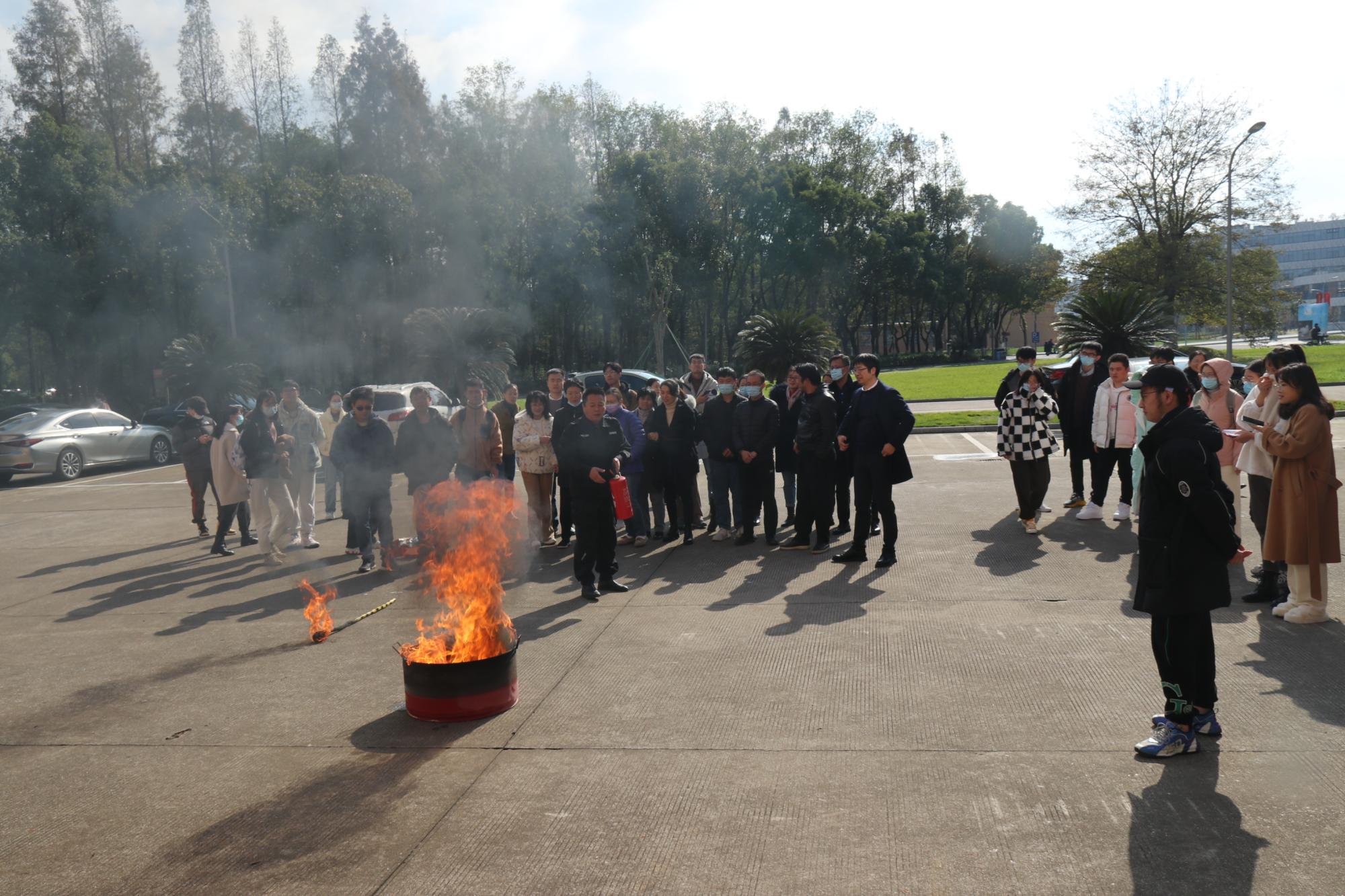 活动开始前,保卫处老师首先通报了最近的几次消防事件,指出消防安全非小事。他还现场演示了佩戴防烟雾面具,并对灭火器使用做了正确指导。随后,师生们按着指导进行了一次消防灭火演练。