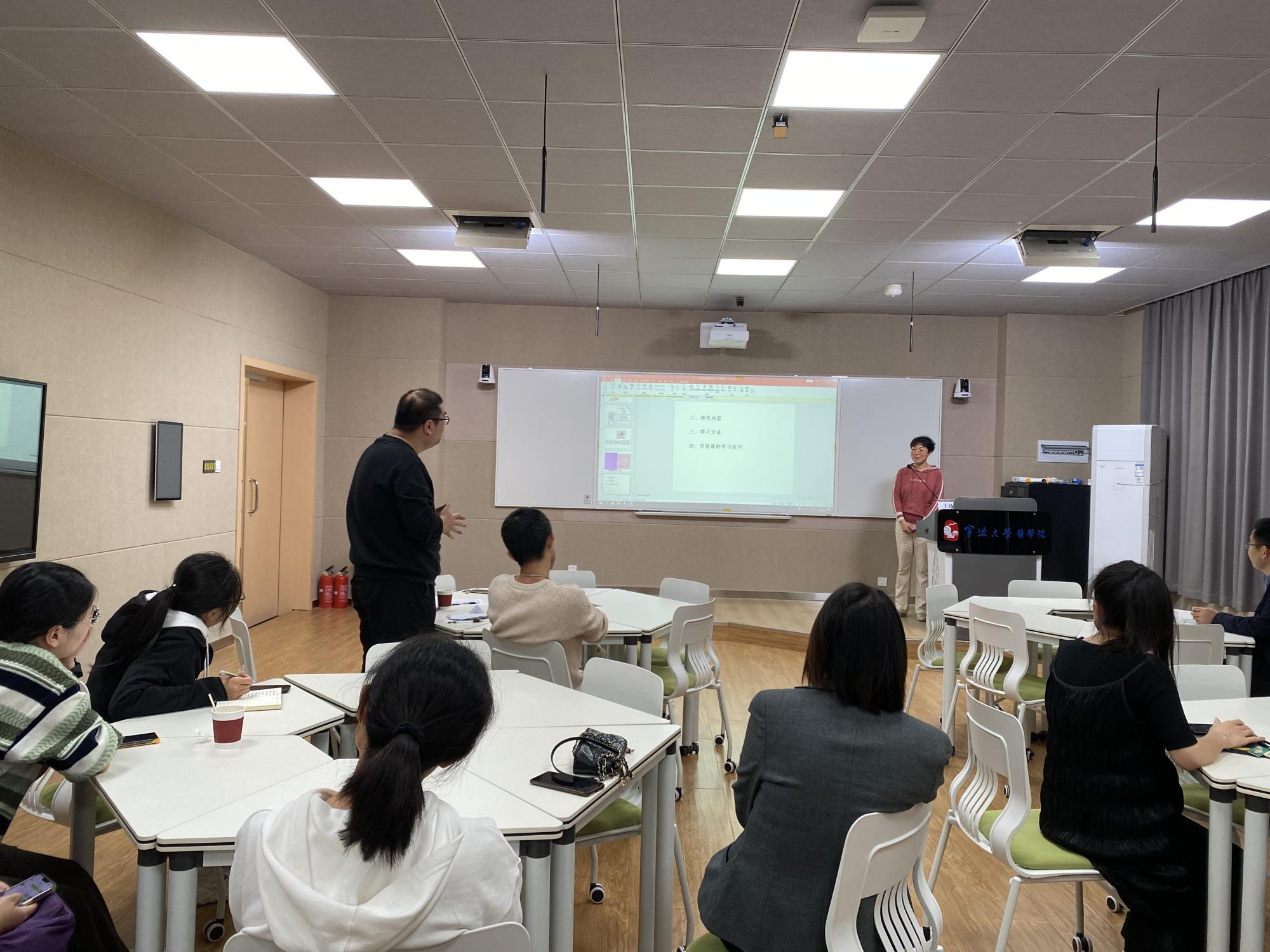 12月6日中午,春满四合院 基础医学院在至真楼智慧教室开展了第五期基础医学课程内容分享交流会。交流会由基础医学院执行院长文金生主持,课程分享主讲教师、基础医学院主干课程负责人、部分骨干教师和青年教师参加了本次交流会。