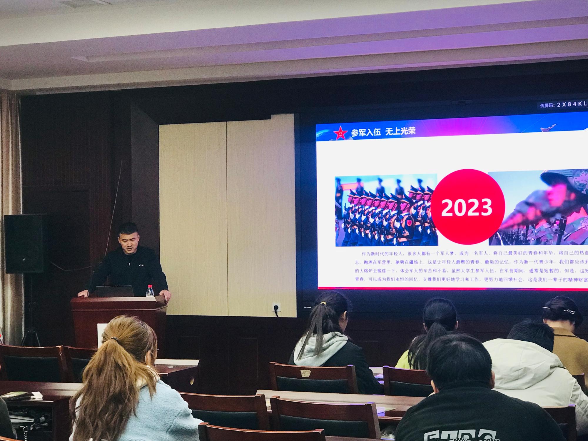 活动中,体育学院2021级本科生高家豪同学分享了自己的军旅生活,当兵对个人成长发展的积极影响。体育学院2022级研究生牛松彪同学从国家征兵规定、条件标准、优待政策等方面为同学们详细介绍了应征入伍的相关规定。两位同学鼓励同学们积极响应国家政策号召,光荣入伍,发挥自身专业技能优势,为国家军队现代化建设添砖加瓦。