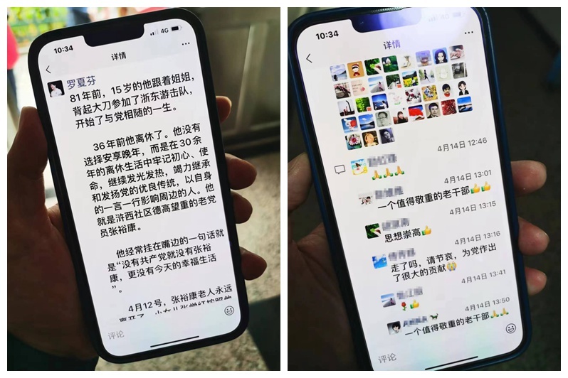 张裕康、蔡碧英离世后,慈溪浒西社区党委书记罗夏芬在朋友圈分享了老人的故事,许多人留言悼念: