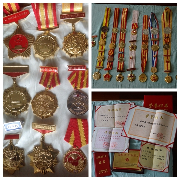 张裕康获得的奖章和荣誉证书。