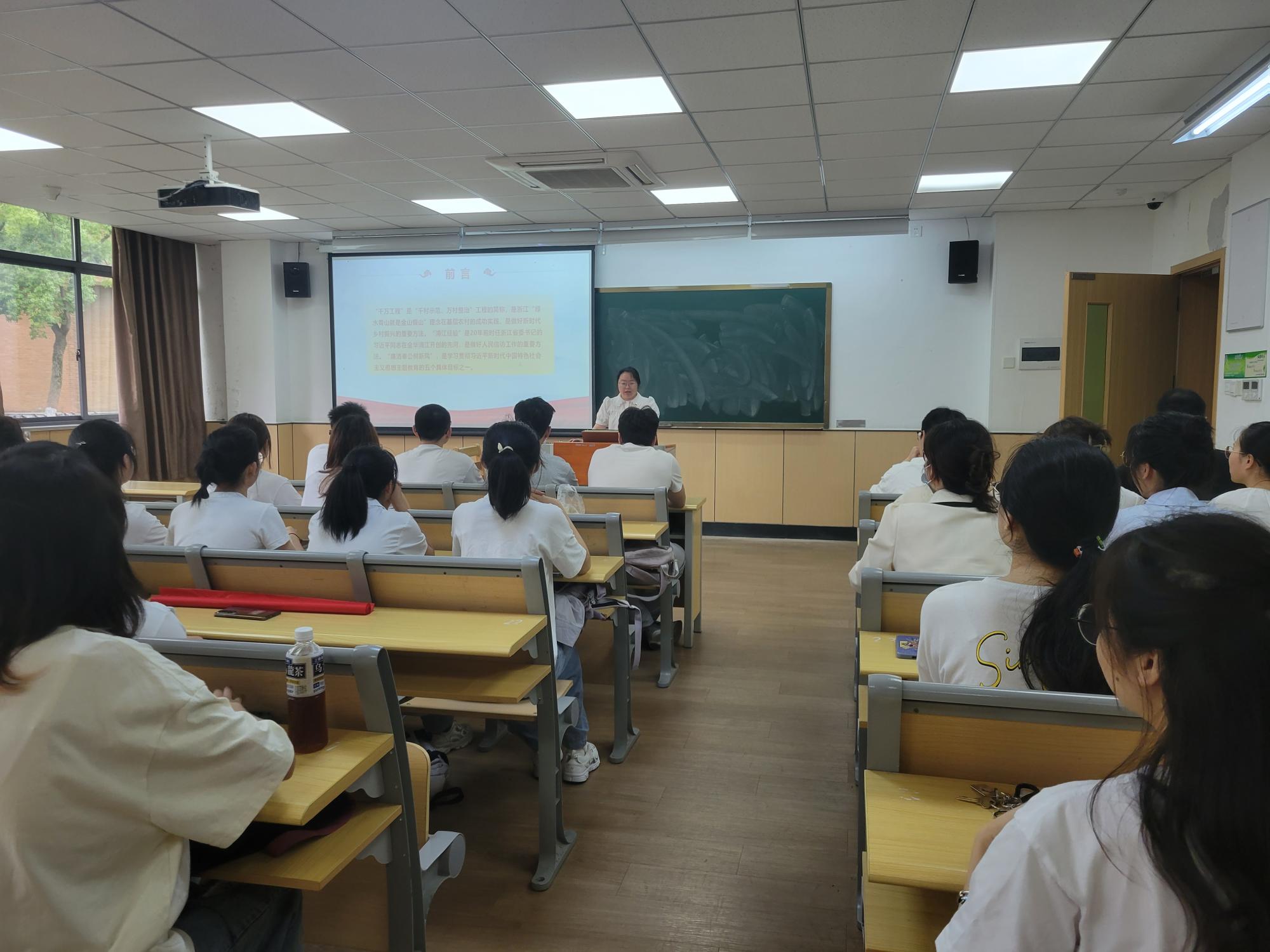 活动首先由研究生第七党支部书记吴柔意讲授专题党课。她详细讲解了浙江“千万工程”和“浦江经验”的核心内涵、主要做法以及成功经验,同时开展“廉洁奉公,树立新风”专题教育,勉励同学们充分汲取“千万工程”智慧力量,大力弘扬“浦江经验”优良传统,争当廉洁自律的学生党员。