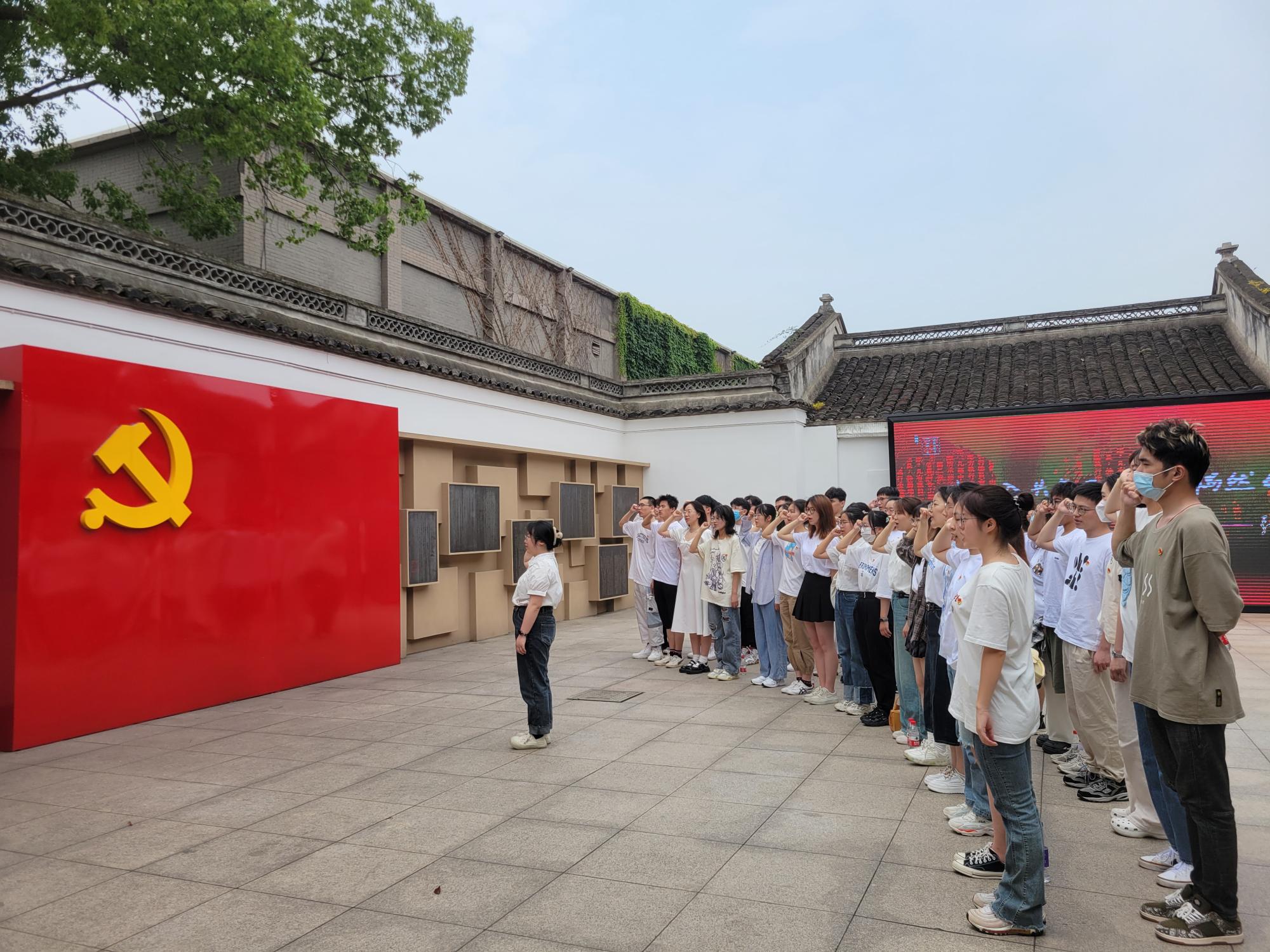 随后,全体学生党员走进北仑霞浦街道张人亚党章学堂开展实地考察学习。大家参观了馆藏文字、图片和革命文物,观看了《初心印记——党章守护人》专题片,用心体悟张人亚同志为党和革命事业作出的卓越贡献。最后,在鲜红的党旗前,全体党员紧握右拳,重温入党誓词,表达为党的事业奋斗终身的决心。