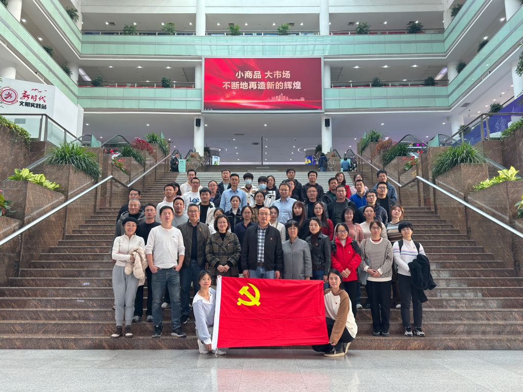 第二站,春满四合院 党员来到了义乌国际商贸城。习近平总书记将义乌的发展概括为“莫名其妙”“无中生有”“点石成金”。在讲解员的带领下,春满四合院 教工党员观看了义乌国际商贸城的宣传片,并先后参观了一区和二区。通过生动还原习近平总书记考察义乌国际商贸城时的情景,以及直接呈现在眼前的各类商品、络绎不绝的中外生意人,党员们深刻认识了这个在“八八战略”引导下,由“鸡毛换糖”到“世界超市”,由区域性市场成长为全球性市场的城市奇迹,也感受到了“无中生有”的创新精神。