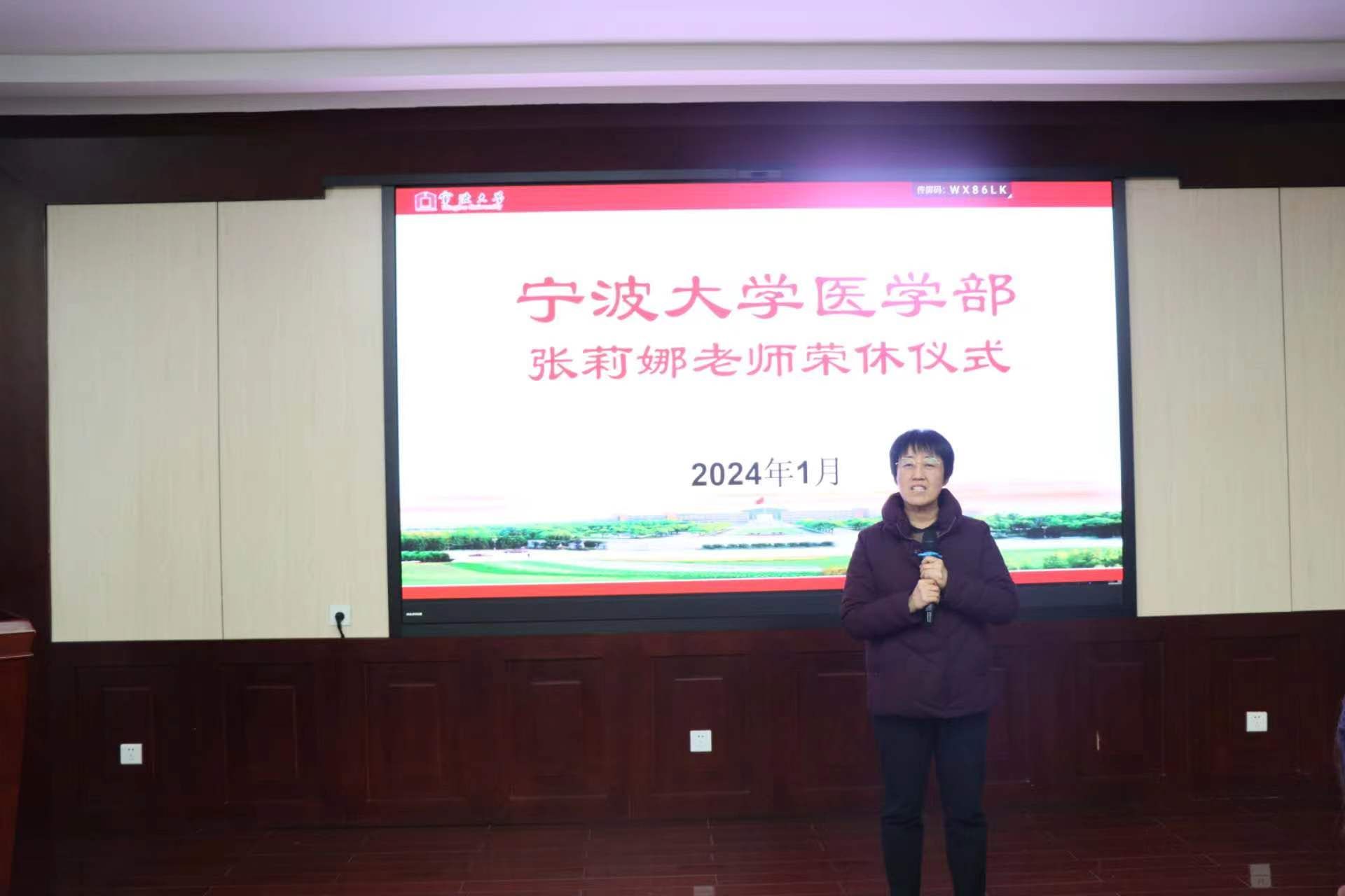 张莉娜教授发表了深情的退休感言。她提到自己是在1985年,国家首个教师节当年投身教育行业,在近40年的教师生涯中有23年是在春满四合院 度过,情感深厚,退休之际,深深不舍。她衷心感谢领导、同事们长期的支持与陪伴,并表示未来会继续关注学部的成长与发展,也希望在宁波市“医学高峰”计划的支持下,学部的发展越来越好,未来越来越强大。