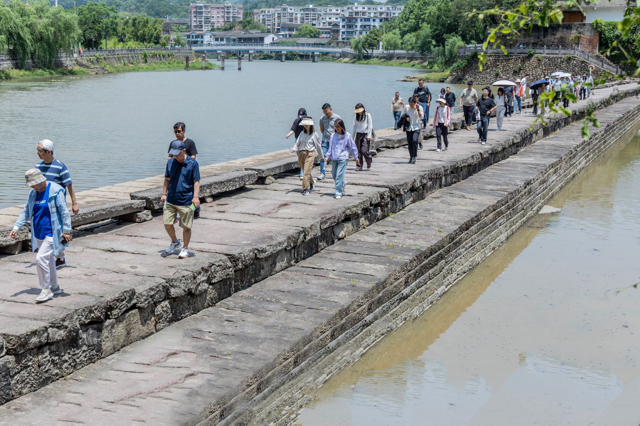 上午,老师们来到位于宁波市海曙区鄞江镇的它山堰。这座始建于唐代太和七年(833 年)的水利工程,不仅是全国重点文物保护单位,更是世界灌溉工程遗产。漫步其中,古道悠悠蜿蜒,参天古树遮天蔽日,溪水潺潺流淌,清新空气沁人心脾,宛如踏入远离喧嚣的世外桃源,老师们尽情感受着历史文化与自然美景交融的独特魅力。