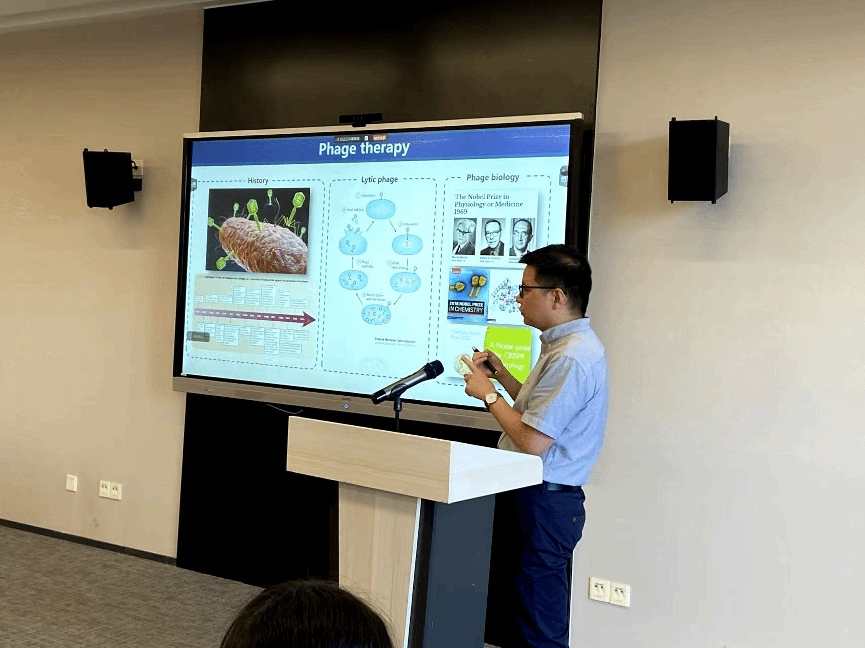 与会专家围绕“细菌和噬菌体前沿”这一主题,展开了深入的交流与探讨。各位专家学者纷纷发表了自己的研究成果和见解。他们从不同角度分析了噬菌体功能、微生物调控机制、益生菌开发等在健康科学领域的应用,探讨了如何利用噬菌体提高对病原的控制、推动医学研究和药物研发的进步等问题。同时,与会人员还就当前面临的技术挑战和未来发展趋势进行了讨论。