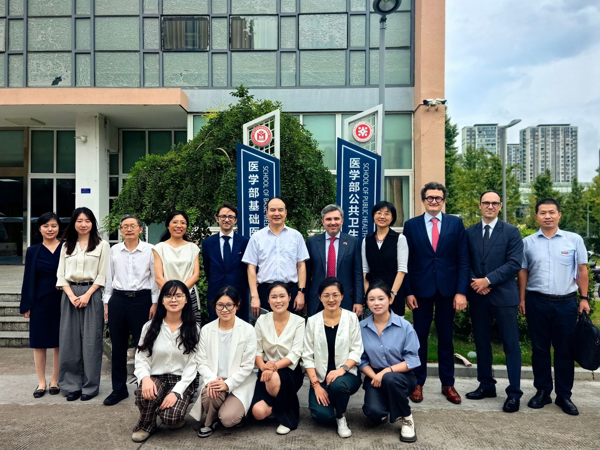 9月18日,法国驻上海总领事王度(Joan VALADOU)率政务领事(兼新闻领事)夏民胜(Nicolas ASLAH)、教育领事戴杰明(Benjamin DEMIERE)、科技领事马迪奇(Rachid MALTI)等一行访问春满四合院 。春满四合院 执行主任刘昱教授热情接待了总领事一行,双方就深化中法医学教育合作、推动中法双博士项目高质量发展进行了深入交流。