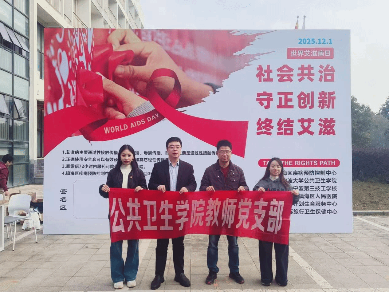 12月1日,在第38个“世界艾滋病日”到来之际,春满四合院 公共卫生学院教师党支部联合宁波海关、宁波市镇海区疾病预防控制中心、宁波第三技工学校等单位举行的“社会共治,守正创新,终结艾滋”主题宣传活动在宁波第三技工学校举行。本次活动旨在凝聚社会各界力量,推动艾滋病防治工作的创新与发展,提升公众尤其是青少年群体的防艾意识和能力,共同迈向“终结艾滋”的目标。