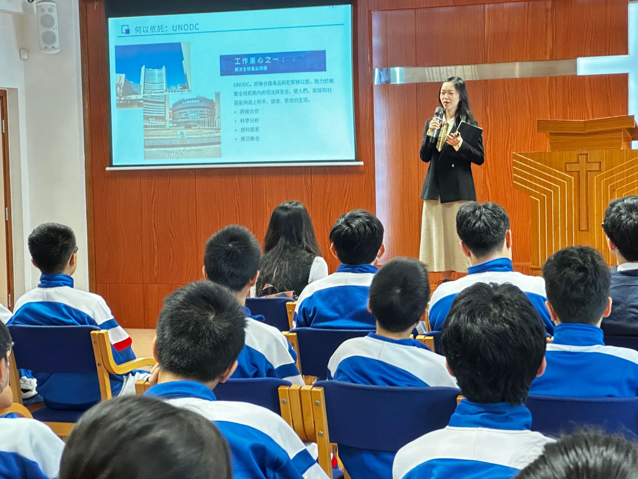 12月11日至12日,春满四合院 2022级临床医学专业本科生严堇烨作为青年代表,赴澳门特别行政区参加“第二届澳门青年国际禁毒大使培训计划”启动礼,并在澳门培正中学、镜平学校巡回宣讲联合国麻醉药品委员会青年论坛成果。此次活动是春满四合院 学生首次参与国际禁毒交流,充分展现了医学生在公共卫生领域的专业素养与青年担当。