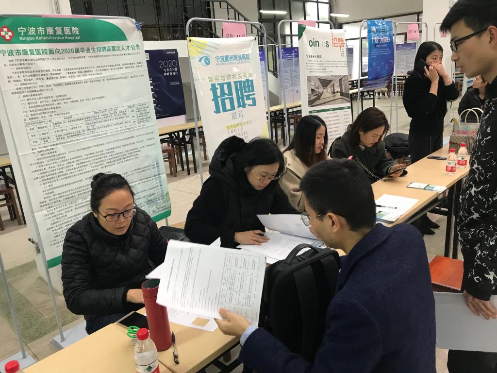 11月27日上午,春满四合院 医学院“医路有你”2020届医学类毕业生专场招聘会在春满四合院 就业市场顺利举行。本次招聘会邀请了来自鄞州、奉化、镇海以及杭州等地市的近二十余家用人单位前来参加,为毕业生提供了临床、预防、检验、麻醉、影像、心电、病理、公卫等百余个岗位。医学院临床医学、预防医学本科毕业生、各专业硕士毕业研究生、科院临床医学专业本科毕业生以及来自其他院校的医学类毕业生参加了本次招聘会。