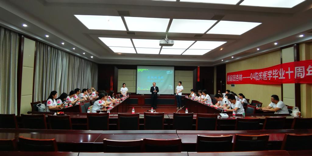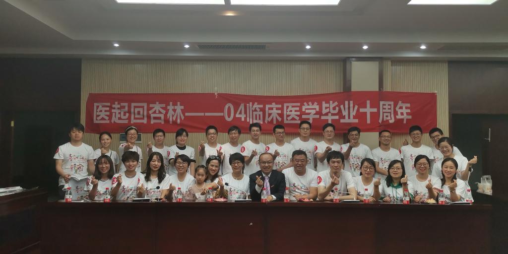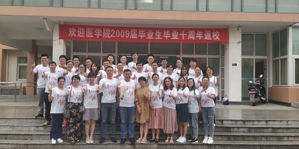6月1日,医学院临床医学本科2009届1班、2班共34位校友回到母校,举行了毕业十周年同学会。医学院党委副书记于瑾滔,原班主任严亚、邢文华老师,原辅导员徐益军老师应邀参加了活动。
