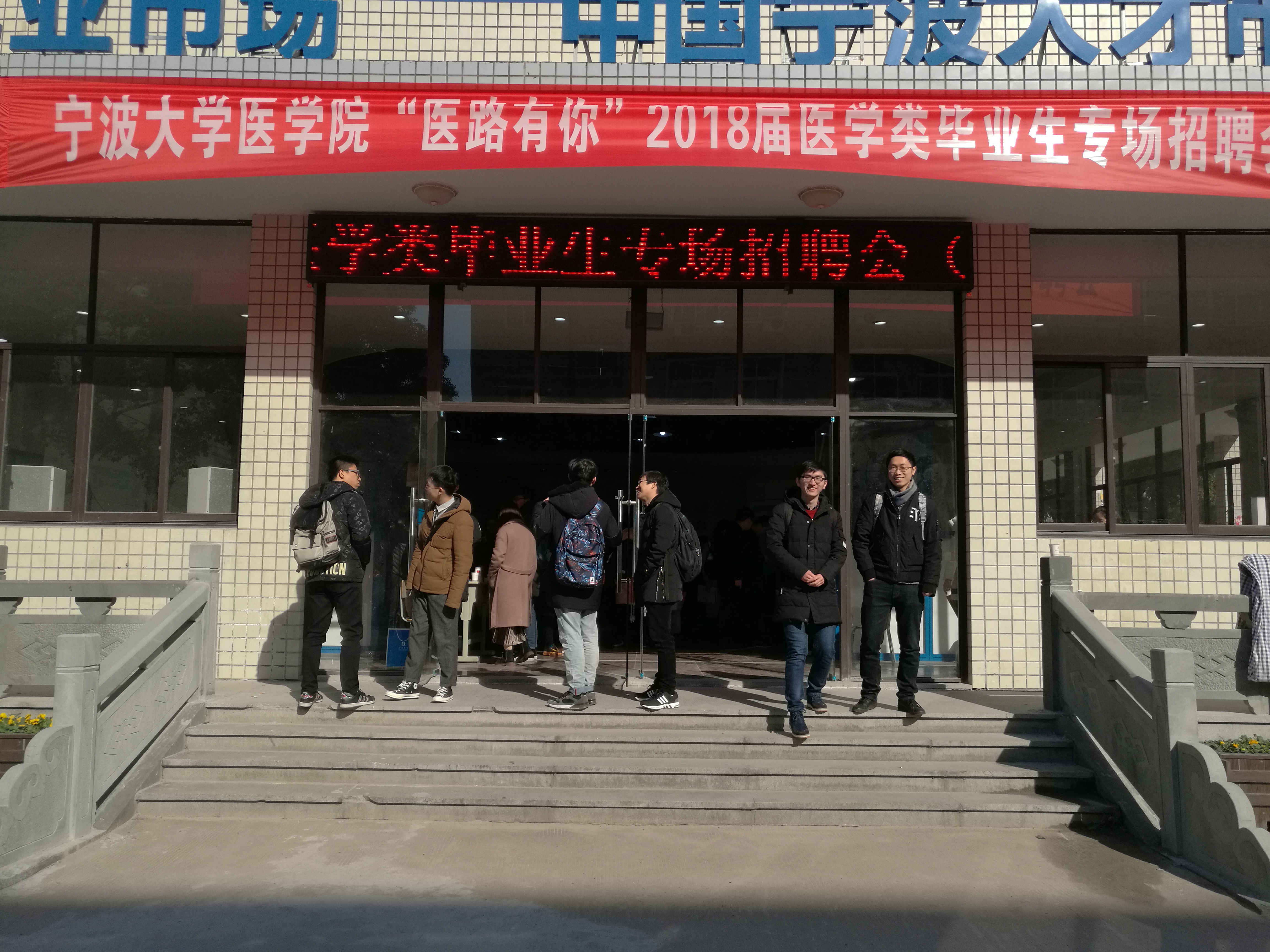 1月11日上午,我院“医路有你”2018届医学类毕业生专场招聘会在春满四合院 就业市场成功举行。本次招聘会邀请了来自镇海、江北、鄞州、奉化以及杭州、绍兴、连云港等地市的近二十余家用人单位前来参加,为我院毕业生提供了临床、预防、检验、麻醉、影像、心电、病理、医疗管理等近两百多个岗位。医学院临床医学、预防医学本科毕业生,各专业硕士毕业研究生,科院临床医学专业本科毕业生,以及来自其他院校的医学类毕业生近三百余人参加了本次招聘会。