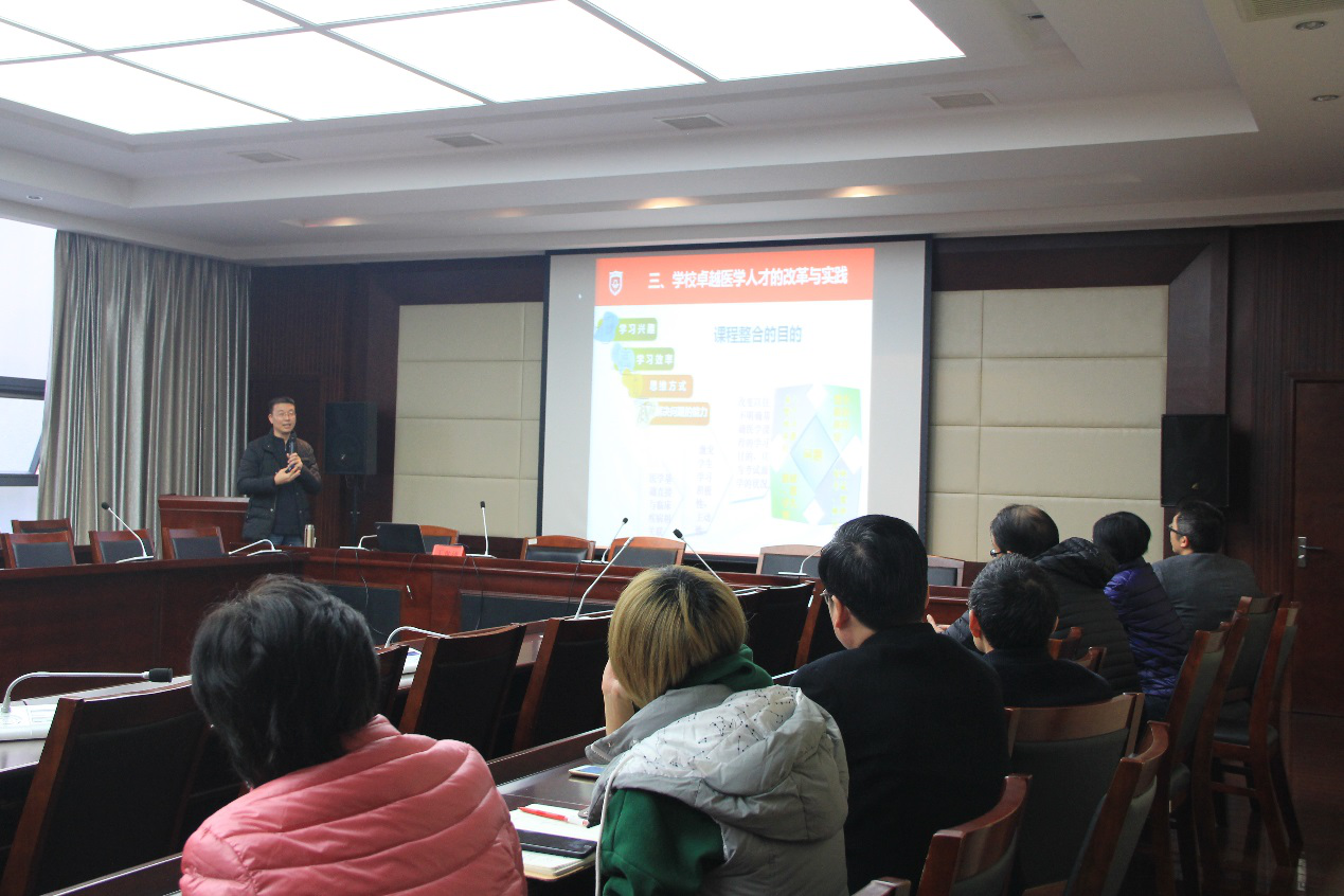 在报告中,王院长立足于温州医科大学近几年在教学实践改革中所取得的经验成果,为老师们讲解了如何培养并激励教师参与教学改革,如何在课程设置突出基础与临床的融合使其更加符合医学生自我发展的需要,以及如何在教学改革过程中对学生成绩做出形成性评价等问题。