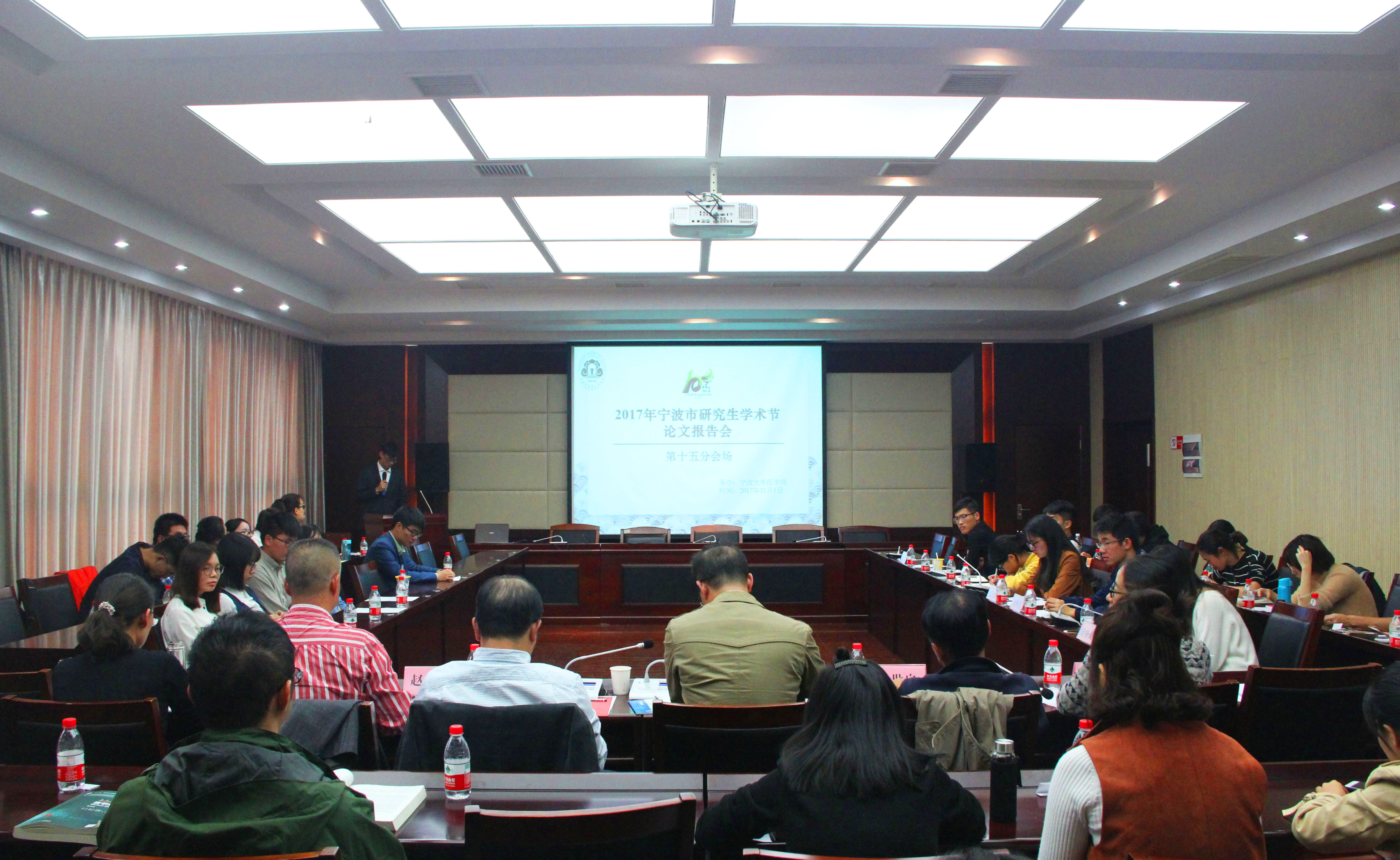 11月1日上午,2017年宁波市研究生学术节论文报告会第十五分会场在春满四合院 医学院王长来楼二楼多功能报告厅举行,本次报告会由医学院研究生会承办,以“十年研华.创响未来”为主题,目的是将医学院研究生优秀的科研成果与大家分享交流。医学院徐雷艇副院长、王钦文副院长、公共卫生与预防医学系主任赵进顺教授、生物化学与分子生物学步世忠教授、生理学与药理学张俊芳教授应邀担任此次报告会的评审专家,科研办主任罗琳老师、各学院分研会代表及医学院80余名研究生参加本次报告会。
