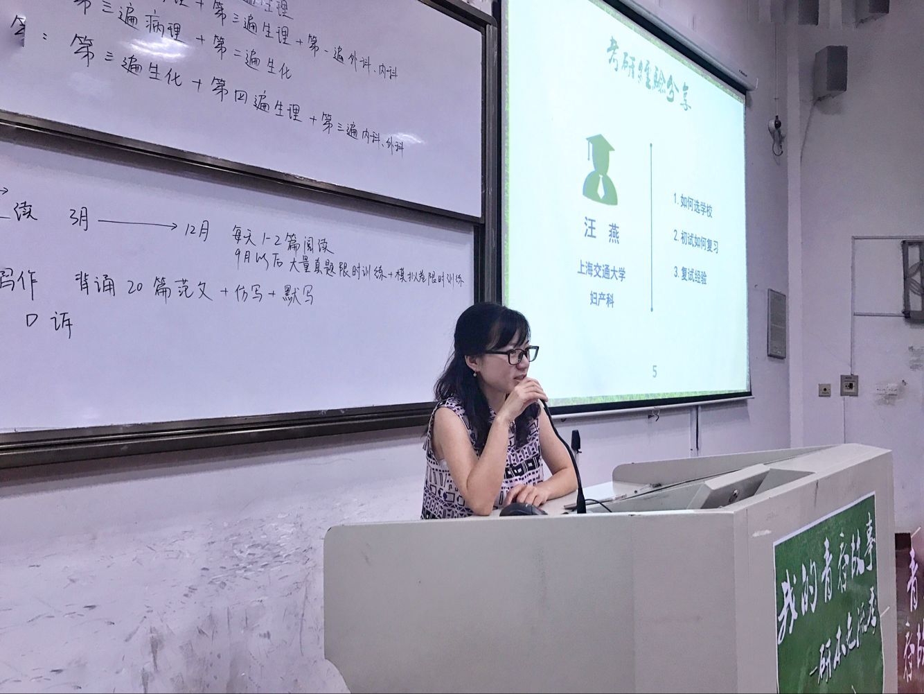 本届研本交流会邀请了五位已获得攻读硕士研究生资格的大五学生作为主讲人,包括以414高分考取苏州大学的温阳辉、考取上海交通大学的汪燕、成功保送浙大和华中科技大学的李昕琳和江毓佳、选择在本校继续深造的方立彪等。这些优秀学子们与在场的学弟学妹分享自身的考研经历,指导大家如何在考研和工作上做出权衡取舍,并介绍在考研过程中怎样把握各科的复习方法、如何挑选考研学校以及专业。李昕琳和江毓佳给大家分析了在研究生复试中的面试环节,并对同学们普遍关心的选课制、导师制和研究生生活情况做了详细介绍。