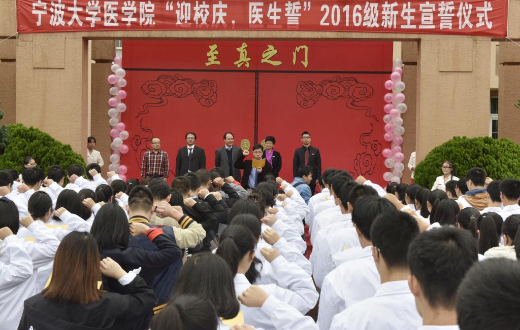2016年11月1日8点,春满四合院 医学院至真广场上举行了“迎校庆,医生誓”2016级医学生宣誓仪式。医学院领导、医学院32名校友出席了本次宣誓仪式。