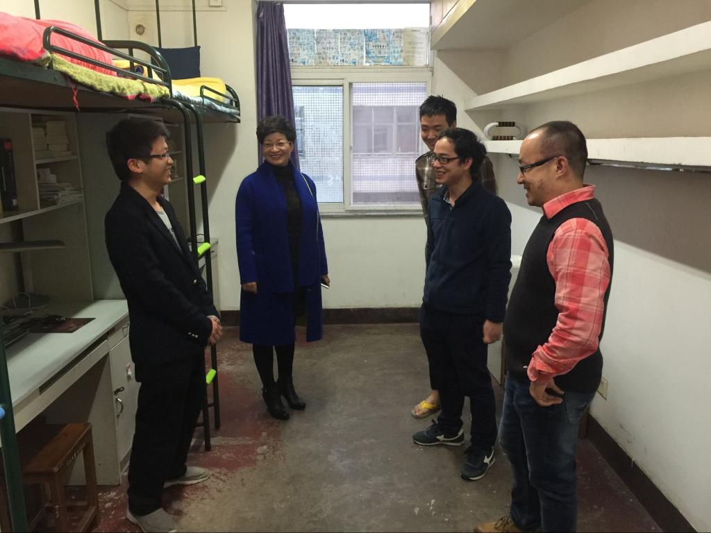 为了更好地了解医学院学生的到校情况以及学生寝室的生活状况,3月4日,医学院党委书记骆巧凤、党委副书记于瑾滔和学工办辅导员对医学院学生寝室进行了走访。