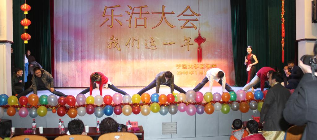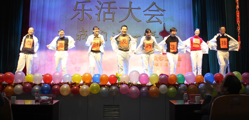 1月21日下午,医学院一年一度的教职工乐活大会在锦绣小剧场热烈举行。2015年度乐活大会以“我们这一年”为主题,展示了全院教职工一年的成果、欢乐和梦想。学院全体教职工、退休老领导、医科所人员参加了此次活动,大家在轻松欢快中辞旧迎新,获得一年中满满的正能量。