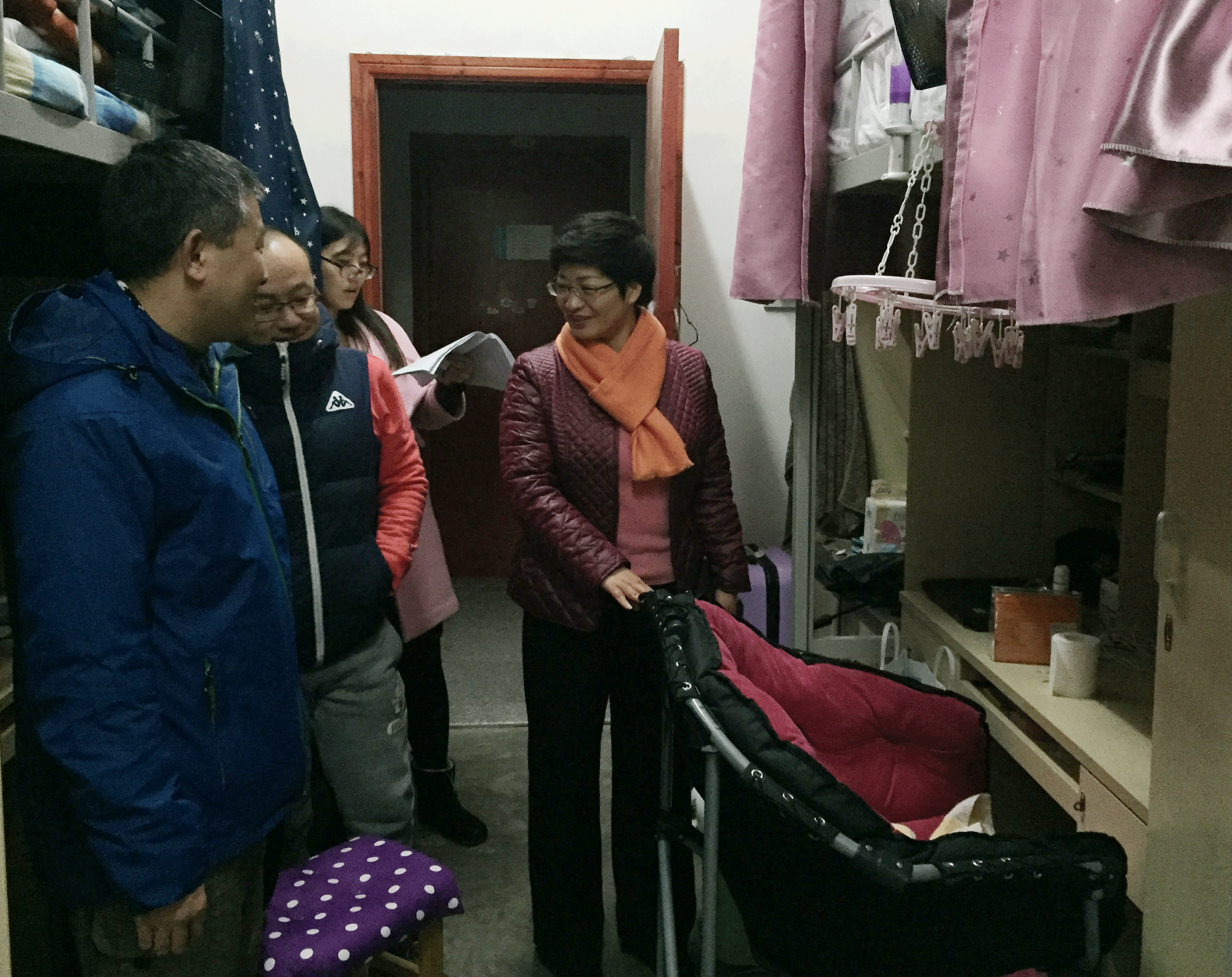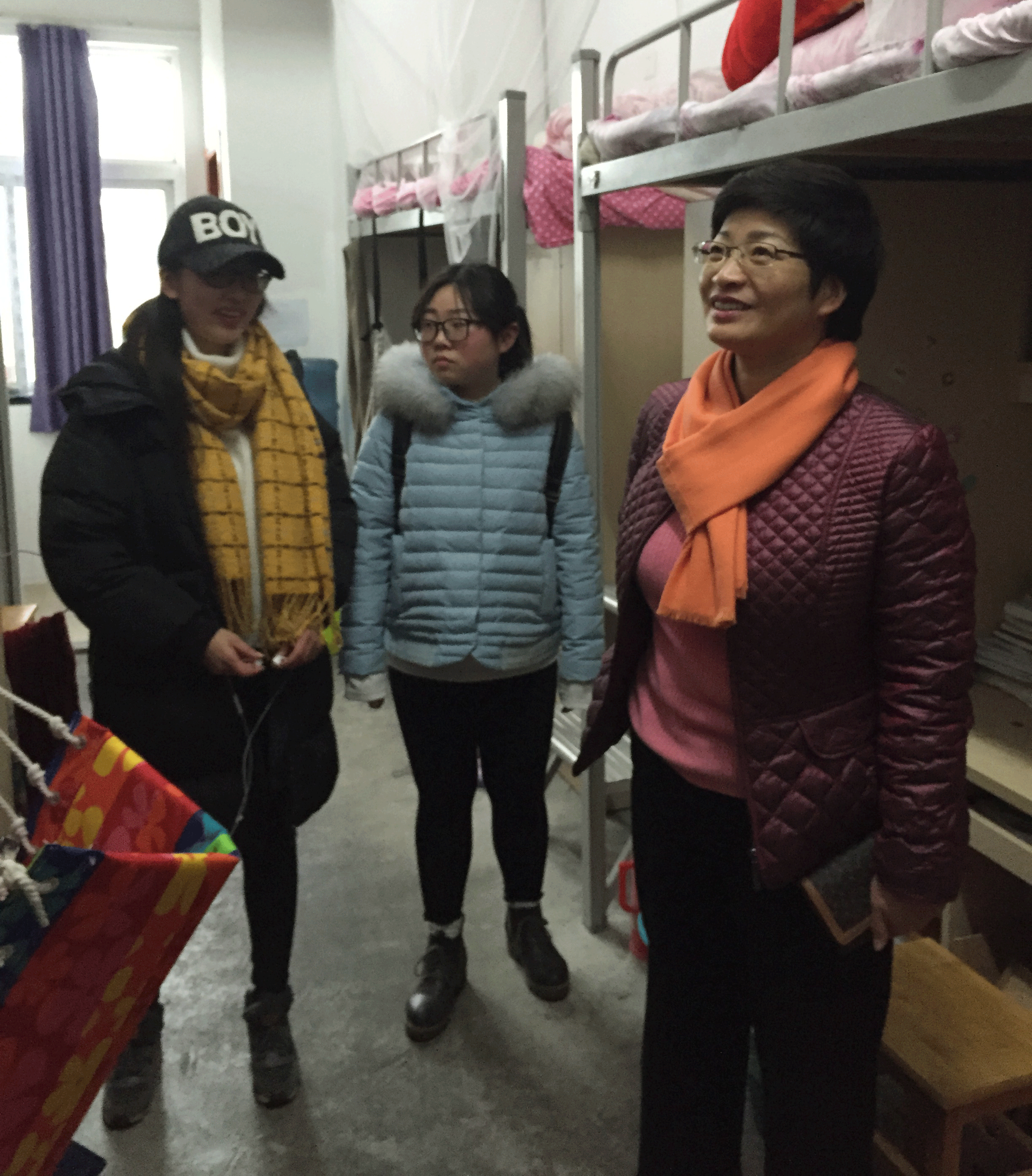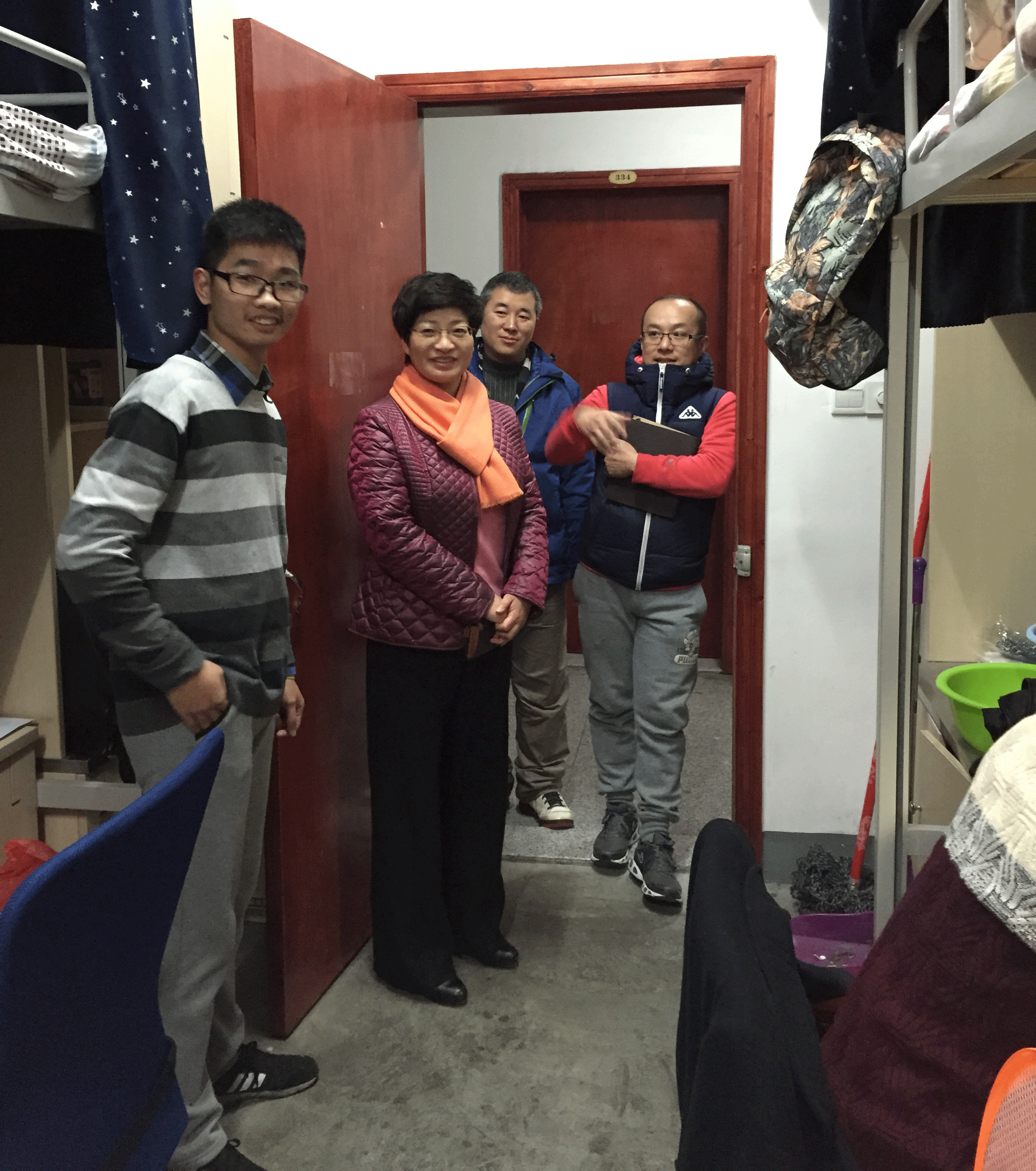 2016年1月6日下午,正值小寒时节,医学院党委书记骆巧凤老师、副书记于瑾滔老师带领学工办辅导员先后到本部宿舍、甬江公寓进行寝室安全文明卫生实地走访,给同学们送去了关怀和问候。