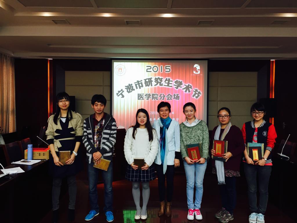 本次报告会的成绩由盲审成绩和现场成绩两部分组成,经过两个半小时的激烈角逐,周琪、陈晓颖和袁仙丽所报告的论文分别获得2015届宁波市研究生学术节金、银、铜奖,同时周琪同学现场成绩得分最高,获得“最佳报告奖”,其导师赵进顺老师获得“最佳指导老师”。此外,分会场还颁发了1个“最佳提问奖”和6个“幸运观众奖”。