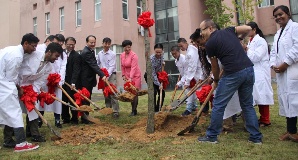 10月27日早上,医学院“两誓对接·塑人塑心”医德医风教育活动之2015级医学生宣誓仪式在至真楼前广场隆重举行,校团委、国际合作处、学生发展与服务处领导,医学院全体党政领导、教师代表以及医学院2015级全体医学大类中外新生共200余人参加了此次活动。在象征医学院奠基起步的至真楼前,领导和师长共同带领新一届医学生走进至真之门,从此走进医学知识的殿堂。