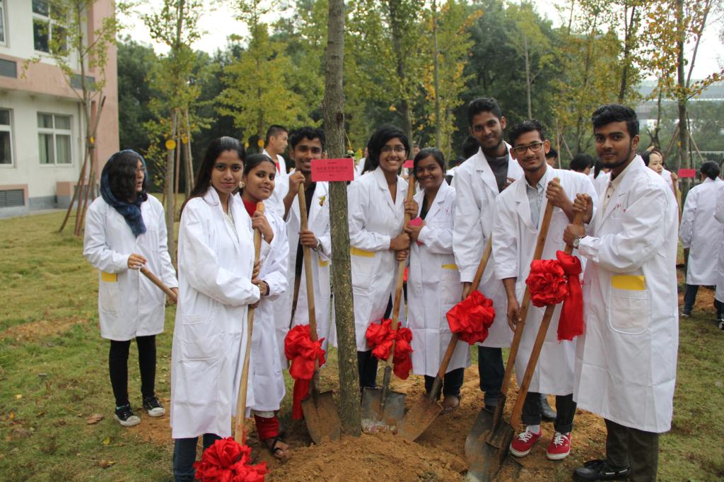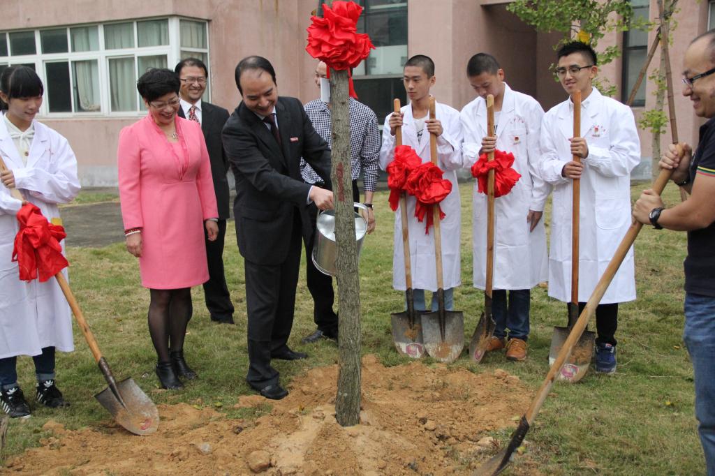 随着至真之门缓缓开启,最感人环节随之到来——“与会领导和嘉宾携新生代表走进至真之门”。师生共进至真之门,是激动,是喜悦,更是一份沉甸甸的医学使命,“博学守仁”的院训,从此铭刻在每一位新生的心中。最后与会领导和新生代表共赴杏林园,一起种下承载着医学初心的杏树,期待树根深扎于地下,蓬勃生长,就像医学院的新生,在新的环境中扎根发芽生长成参天大树。