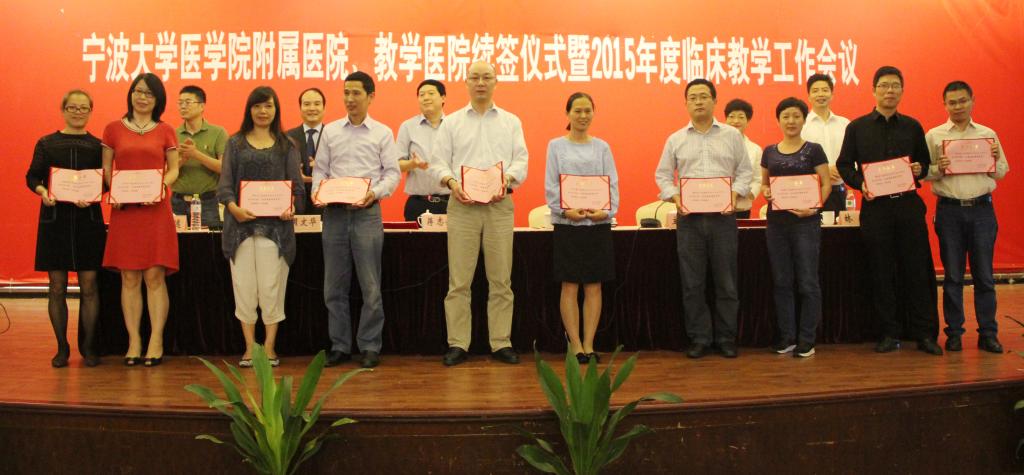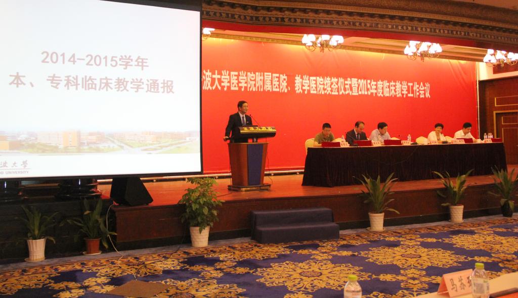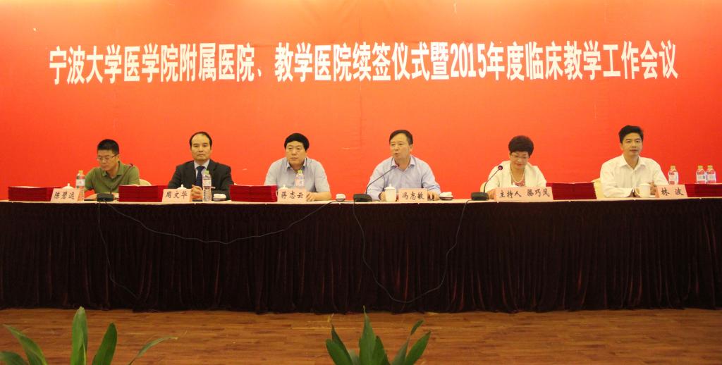 10月22日,宁大医学院举行附属医院、教学医院续签仪式暨2015年临床教学工作会议。副校长冯志敏、市卫计委副主任蒋志云出席会议并讲话。会议由医学院党委书记骆巧凤主持。市卫计委医政处、校教务处相关负责人,医学院领导班子,8家附属医院、10家教学医院主要负责人和分管负责人,各医院科教科科长和老师,优秀临床班主任、本科生导师和带教老师及医学院教师代表等参加了会议。