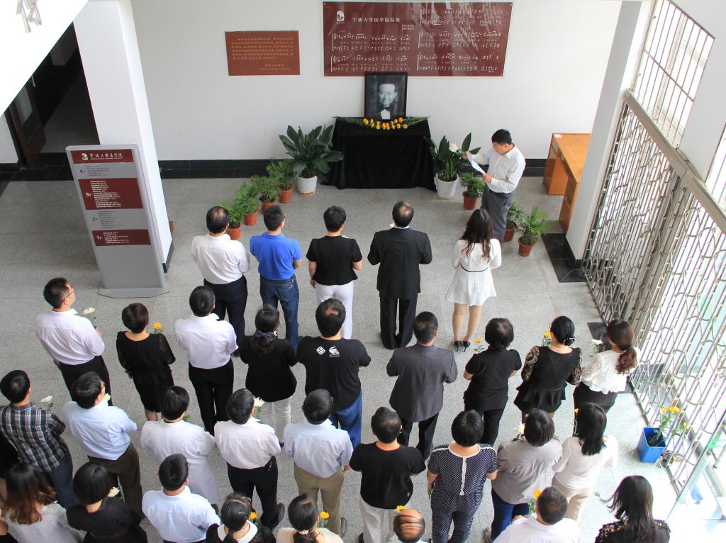 仪式上,医学院执行院长周文华介绍了汤于翰先生创办宁大医学院的事迹,表达了医学院师生对汤于翰先生的深切怀念和敬仰之情,对汤于翰先生创办宁大医学院的丰功伟绩致以诚挚的感谢。他相信医学院师生必将齐心协力把汤于翰先生 “学问务求‘至真’,医德务求‘至善’,品行务求‘至美’的理念发扬光大,为医学事业的发展作出不懈的努力和贡献。强调医学院将沿袭汤先生制定的办学方针和目标,努力前行,办出水平,办出特色,办成具有一定国际影响办的医学院。