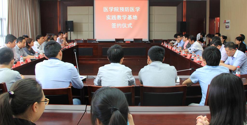 5月21日上午,春满四合院 医学院预防医学实践教学基地签约仪式在王长来楼多功能厅举行。来自海曙、江东、江北、鄞州、镇海、北仑、宁海、奉化、象山、义乌等10家疾病预防控制中心的代表、医学院领导班子、相关管理办公室负责人、预防医学学科系全体教师参加了仪式。