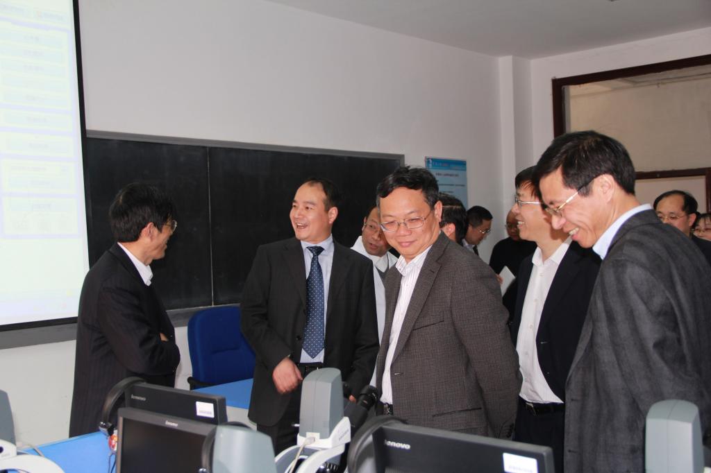 张明华一行首先参观了医学院显微数码互动教室、分子病理学研究室、解剖学与组织胚胎学实验室、神经生物学研究实验室、糖尿病研究室、卫生毒理学实验室等,随后学校在王长来楼多功能厅举行了座谈会,座谈会由校长聂秋华主持。