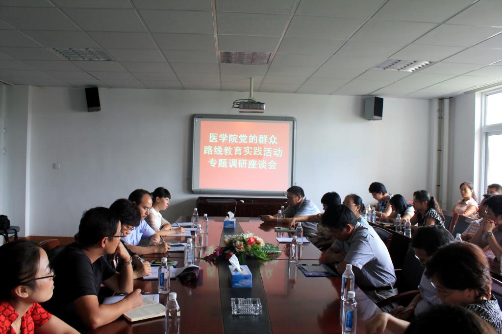9月24日下午,医学院召开党的群众路线教育实践活动专题调研座谈会,教务处处长李学兰、学院领导班子认真听取了教师、教辅和管理人员以及在读本研学生共24名党内外师生代表的意见。
