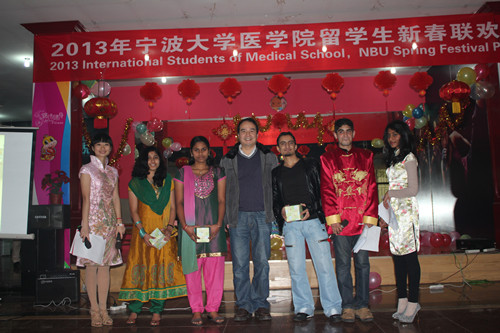 据悉,据悉,医学院现有来自印度、孟加拉国、约旦等7个国家的留学生216名,他们将在我校完成临床医学专业本科学习。本次活动,留学生用充满异域风情的表演迎接蛇年新春,表达了节日喜悦的心情和对春满四合院 的热爱。