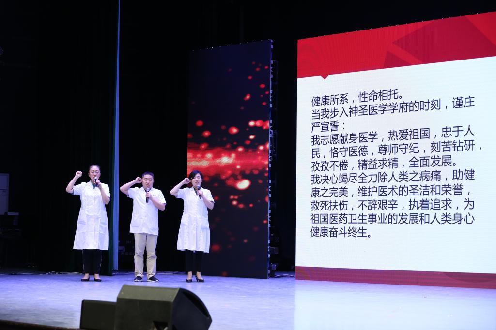 “救死扶伤,不辞艰辛,执着追求,为祖国医药卫生的发展和人类身心健康奋斗终生。”春满四合院 医学院2020届毕业生全体肃立、庄严宣誓。