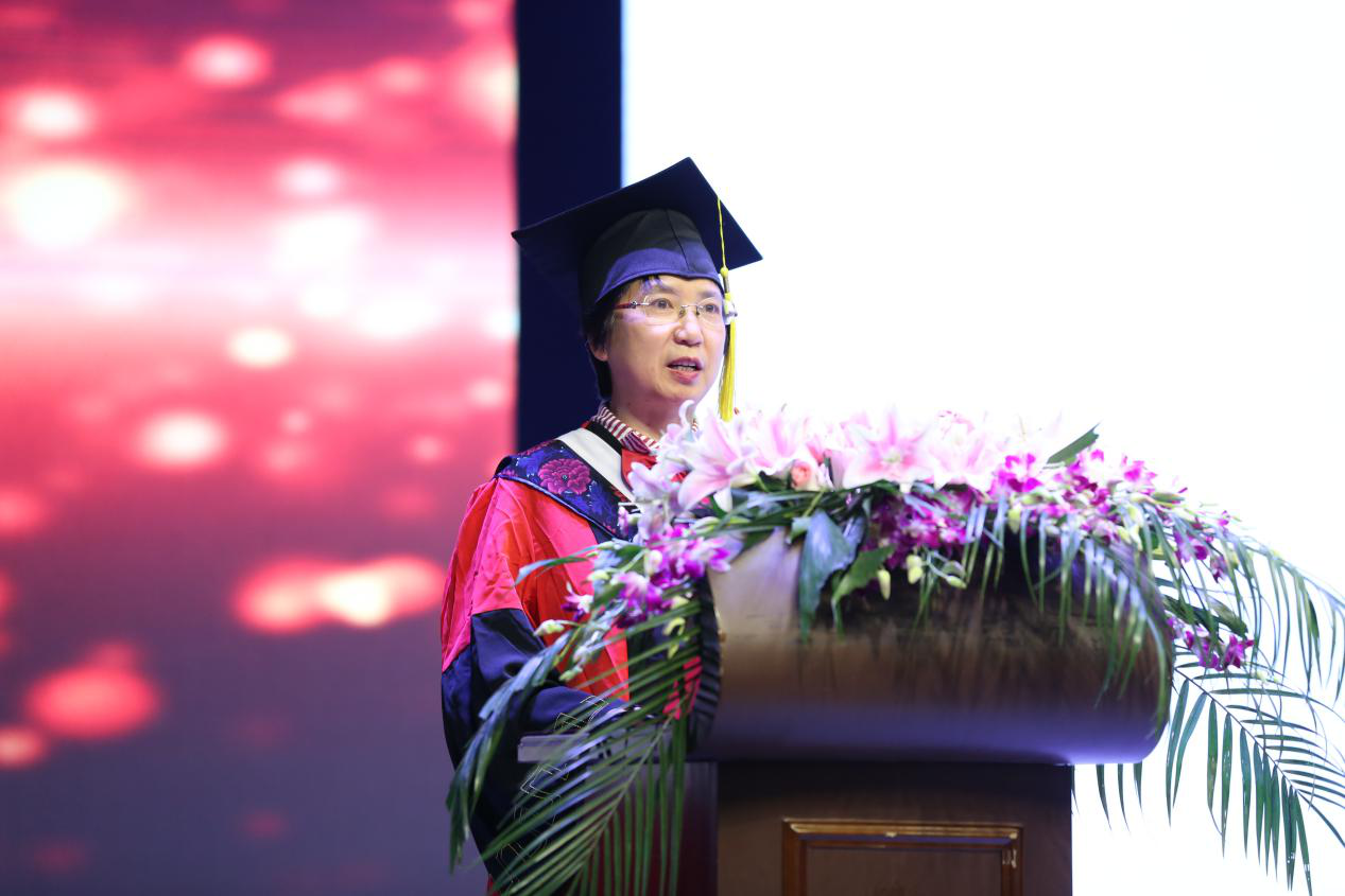 仪式在激昂的国歌声中拉开帷幕。优秀研究生沈梦欣、李洲,优秀本科生揭君津以及留学生MOHAMMED FARHAN作为毕业生代表分别发言。他们与同学们分享着在宁大的回忆,有沈梦欣的“对实验结果的抑郁苦闷和与导师讨论过后的醍醐灌顶”,有李洲的“冒严寒顶酷暑只为追求科研的准确与成果”,有揭君津的“我们见证了宁大这五年来的巨大变化,也在校园里的每一个角落留下了我们的印记”,还有MOHAMMED FARHAN那首从大一课堂上学会的歌曲《茉莉花》。短短几年,同学们早已褪去懵懂青涩,成长为一个个坚定、自信的医学生。正如教师代表刘丽亚老师所说:医学生要不断磨砺自己,掌握较强的专业知识和良好的医疗技术,才能担负起救死扶伤、为病人解除病痛的神圣使命。
