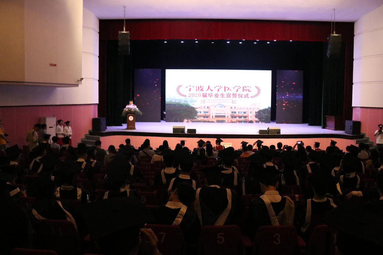 6月22日,在林杏琴会堂举办了一场专属于2020届医学毕业生的特殊仪式,医学院全体院领导、各医院领导及教师代表出席仪式。此次宣誓仪式特别邀请了春满四合院 附属医院副院长王珊珊、春满四合院 附属李惠利医院ICU中心主任董绉绉及春满四合院 附属人民医院呼吸与危重症医学科王师三位宁波援鄂医疗队的队员作为领誓人,带领毕业生们重温入学时的誓词。
