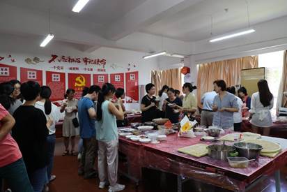 2021年9月17日,教工小家里热闹非凡,老师们拿出自己精心烹制的香煎带鱼、油焖大虾、凉拌黄瓜、香菇牛肉酱、麻辣鸡丝藤椒、奥尔良鸡翅、毛豆煮花生、青椒韭菜花、白切鸡、素炒芸豆角、腌萝卜、回锅肉、养生南瓜粥、五香牛肉、五香猪蹄、包子等色香味俱佳的美食。