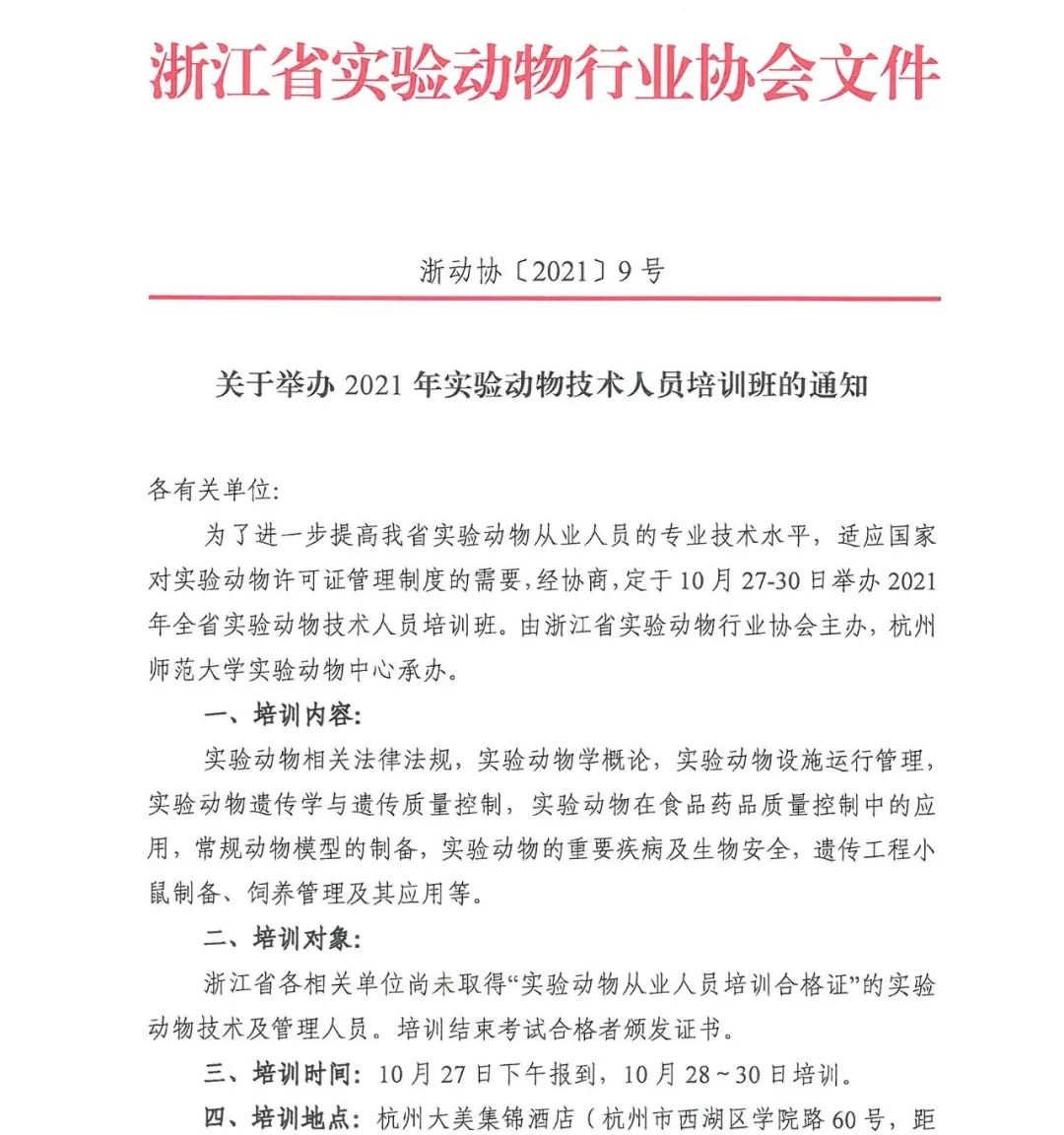 关于举办2021年全省实验动物技术人员培训班的通知
