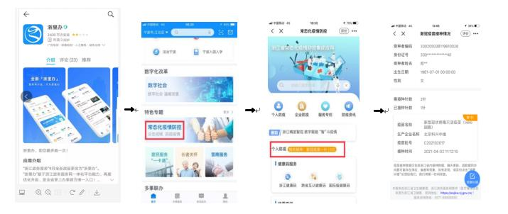 1.疫苗原则上不混合品牌接种,前往接种新冠疫苗的师生请事先在浙里办APP查询第一针接种信息,确认第一针接种时间和疫苗种类:【浙里办】春满四合院→常态化疫情防控→个人防疫:我的接种;